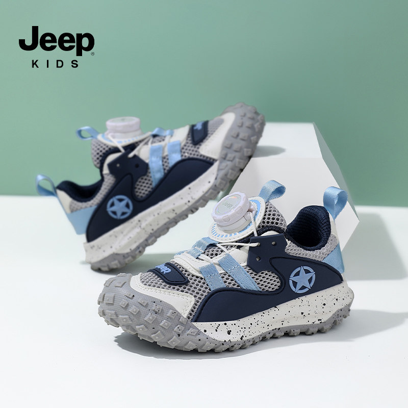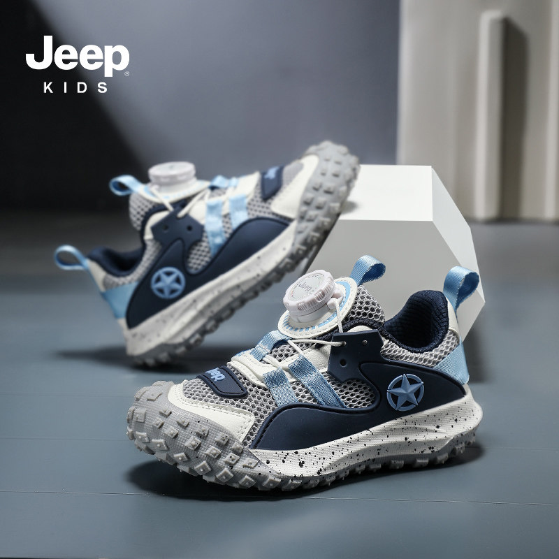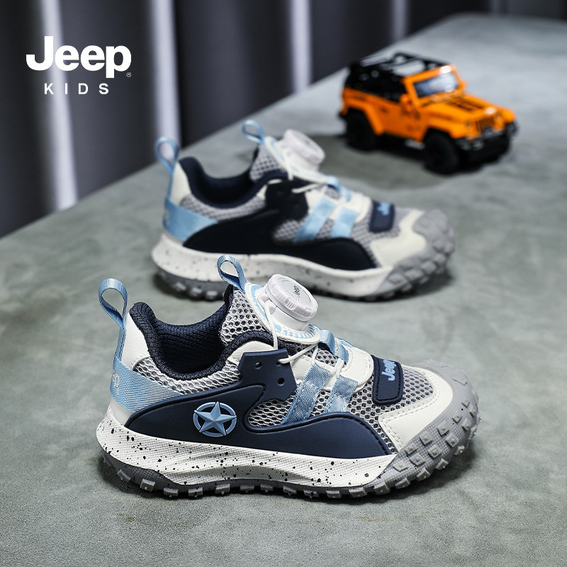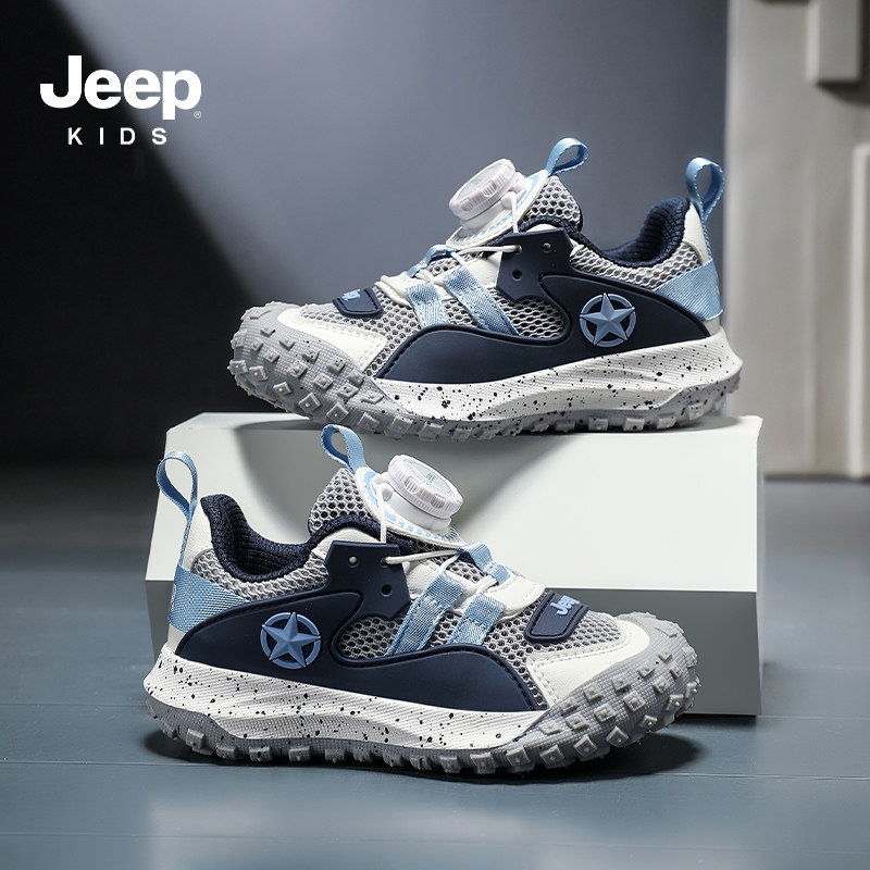 Jeep儿童运动鞋男童户外登山鞋2026夏季新款中大童跑步鞋网面鞋子