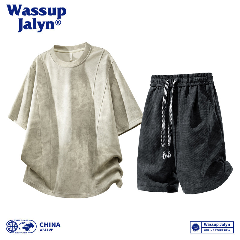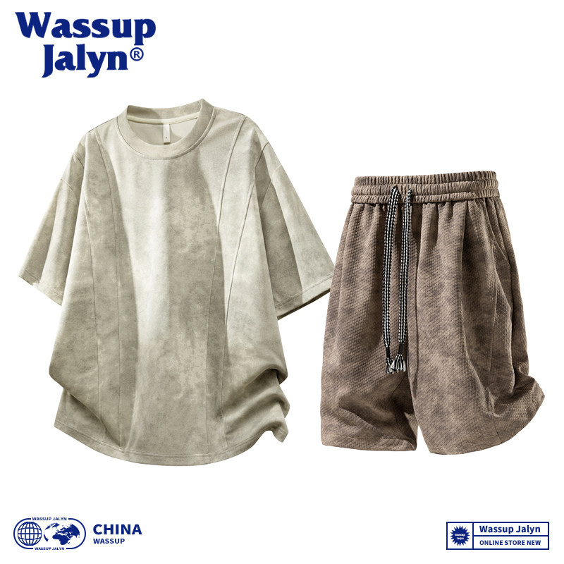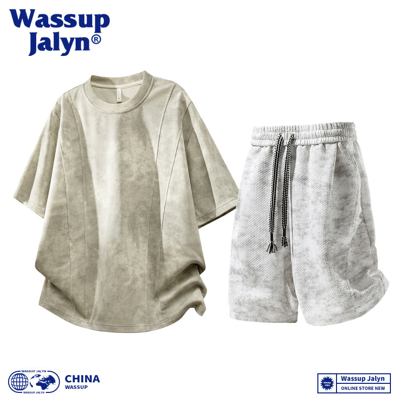 WASSUP JALYN扎染运动套装男夏季宽松休闲短袖短裤两件套痞帅潮牌