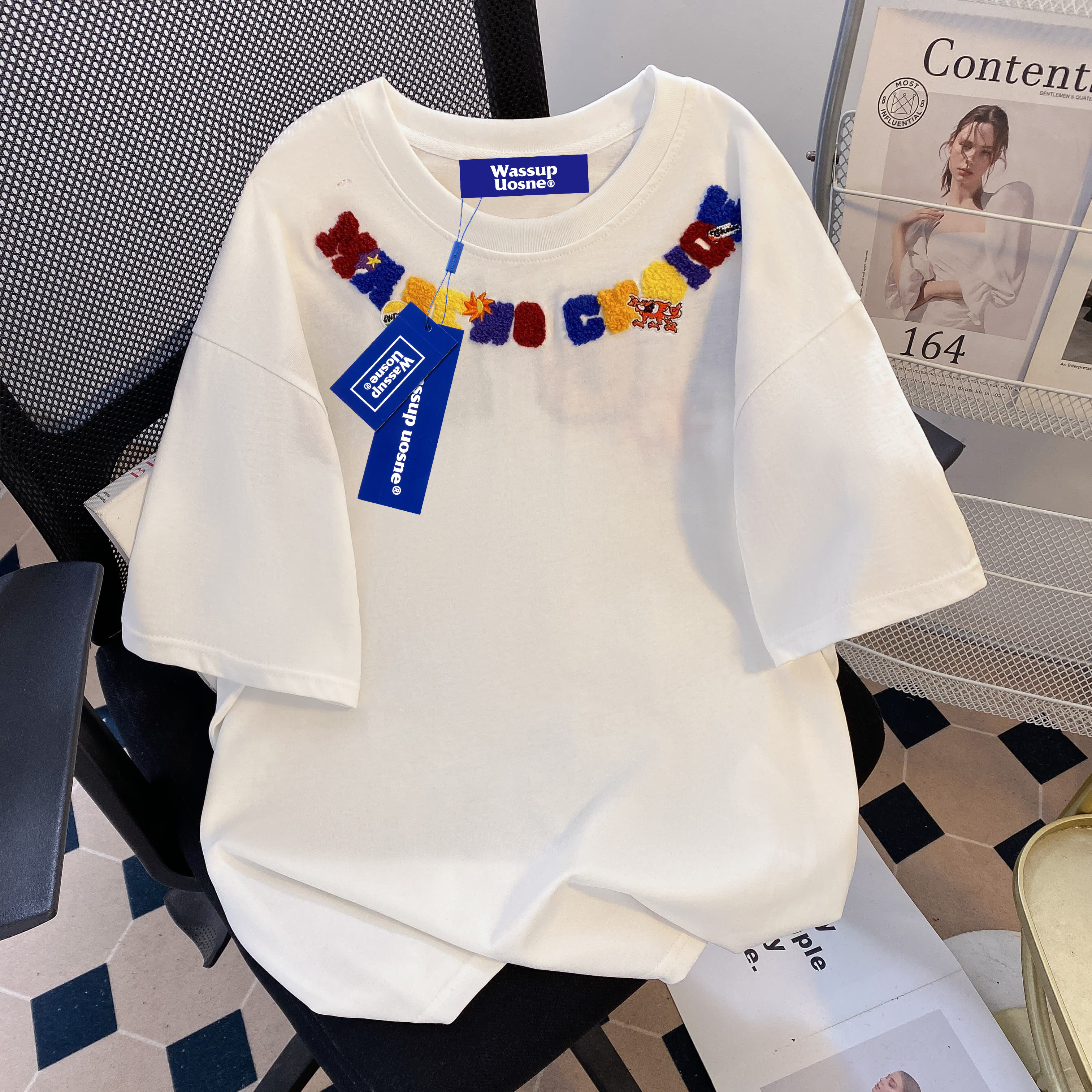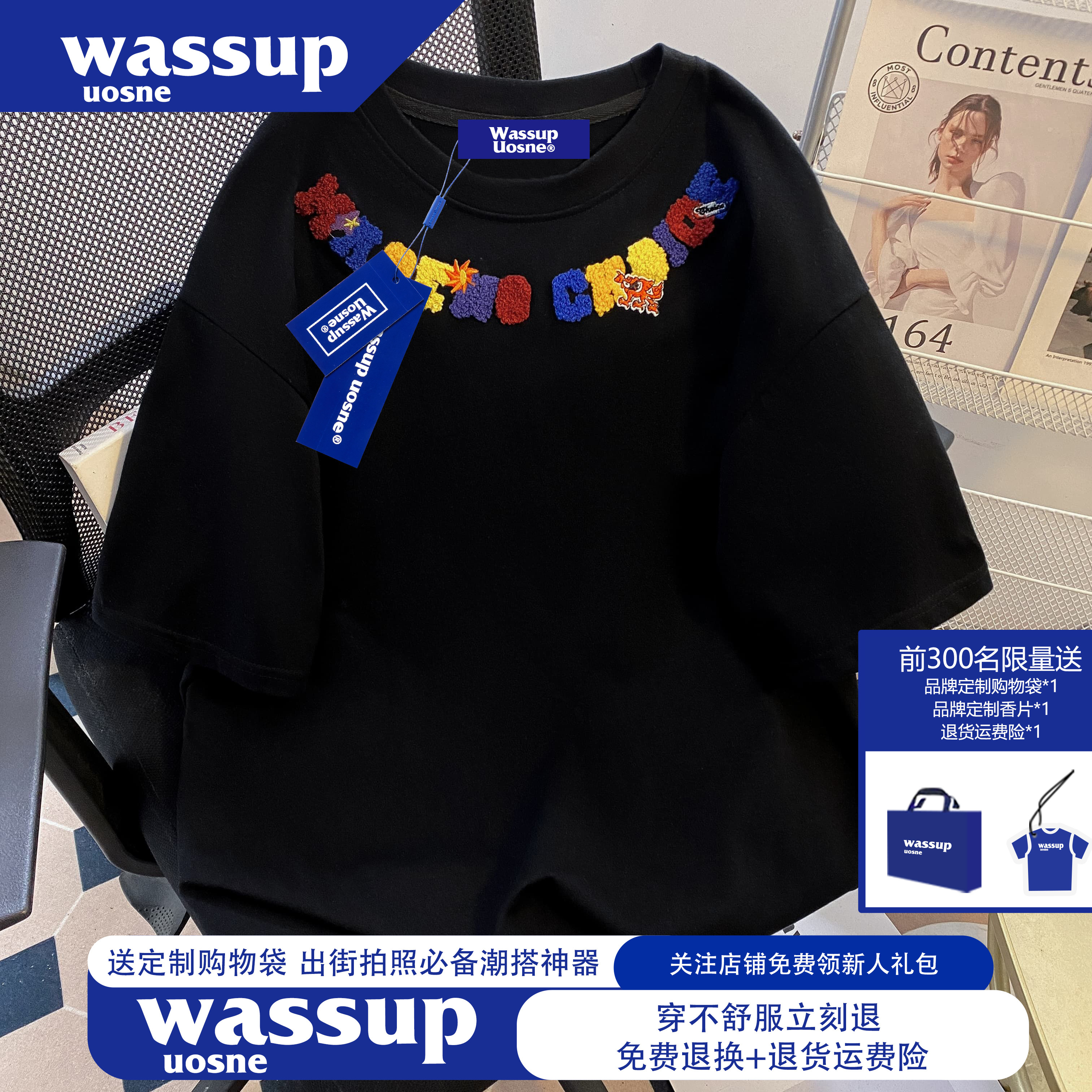 --------------------- WASSUP美式高街潮牌青少年情侣短袖t恤男女夏季重磅纯棉刺绣上衣 --------------------- --------------------- 【原价】129元 【券后价】79.9元