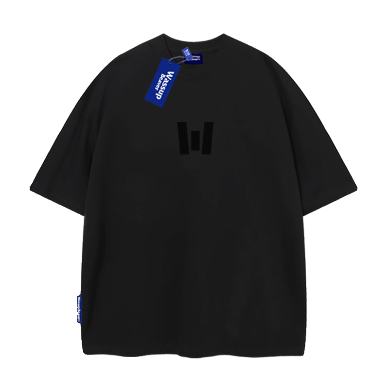 WASSUP BEAVER国潮美式立体植绒印花短袖T恤男女高街宽松半袖TEE
