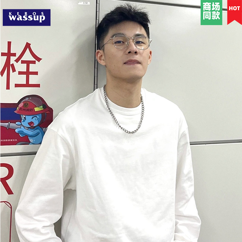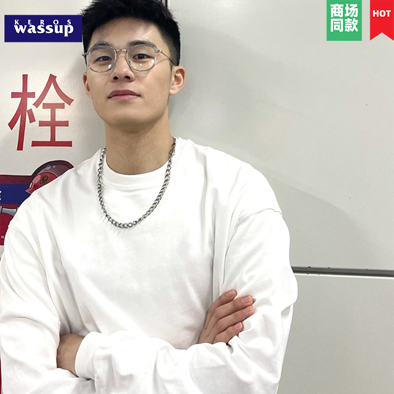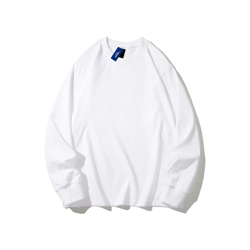 买一送一260g重榜纯棉长袖t恤男纯白色圆领卫衣内搭上衣女打底衫