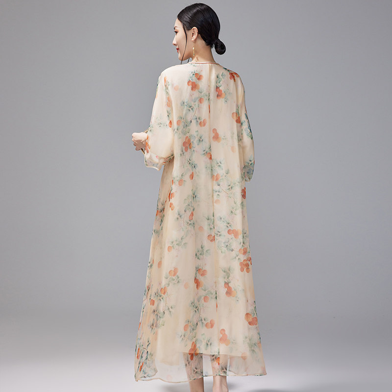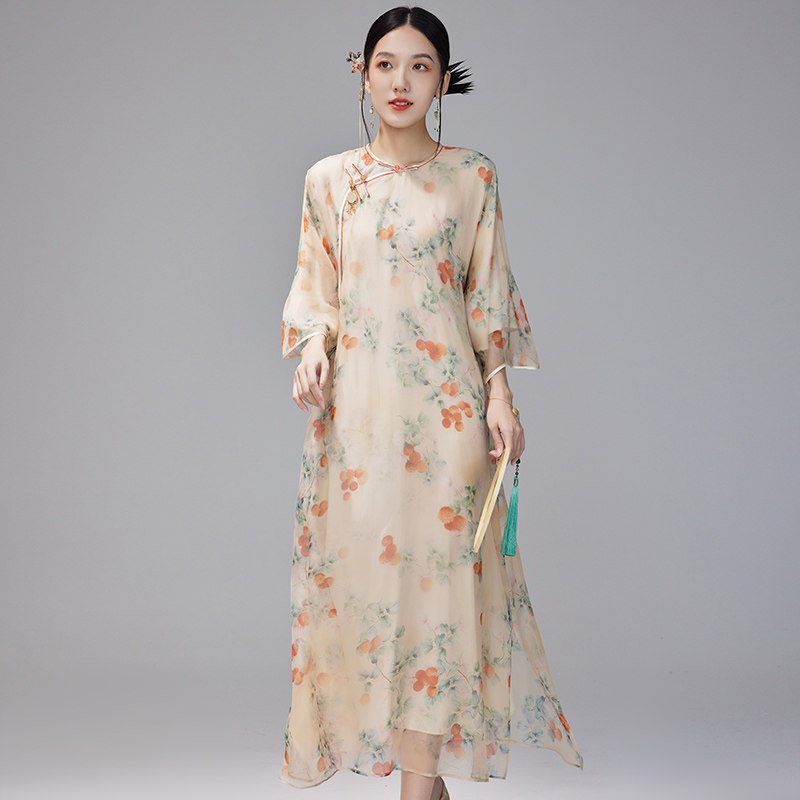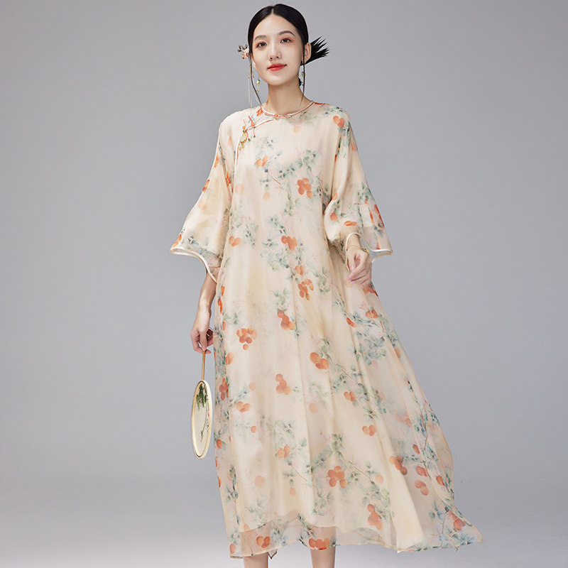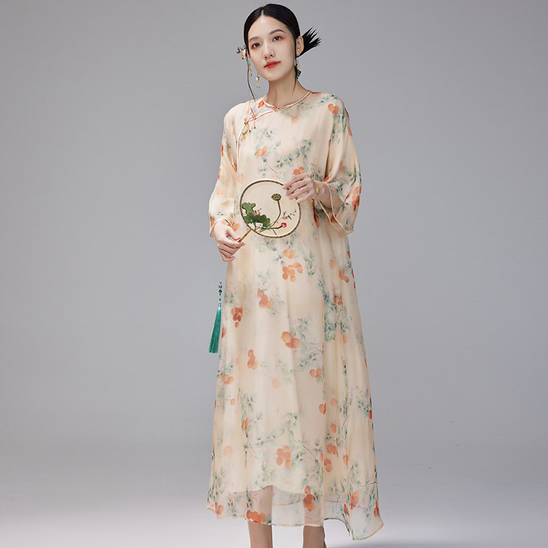淘宝陌遇2025春夏新款中国风100%桑蚕丝改良旗袍复古宽松新中式连衣裙
