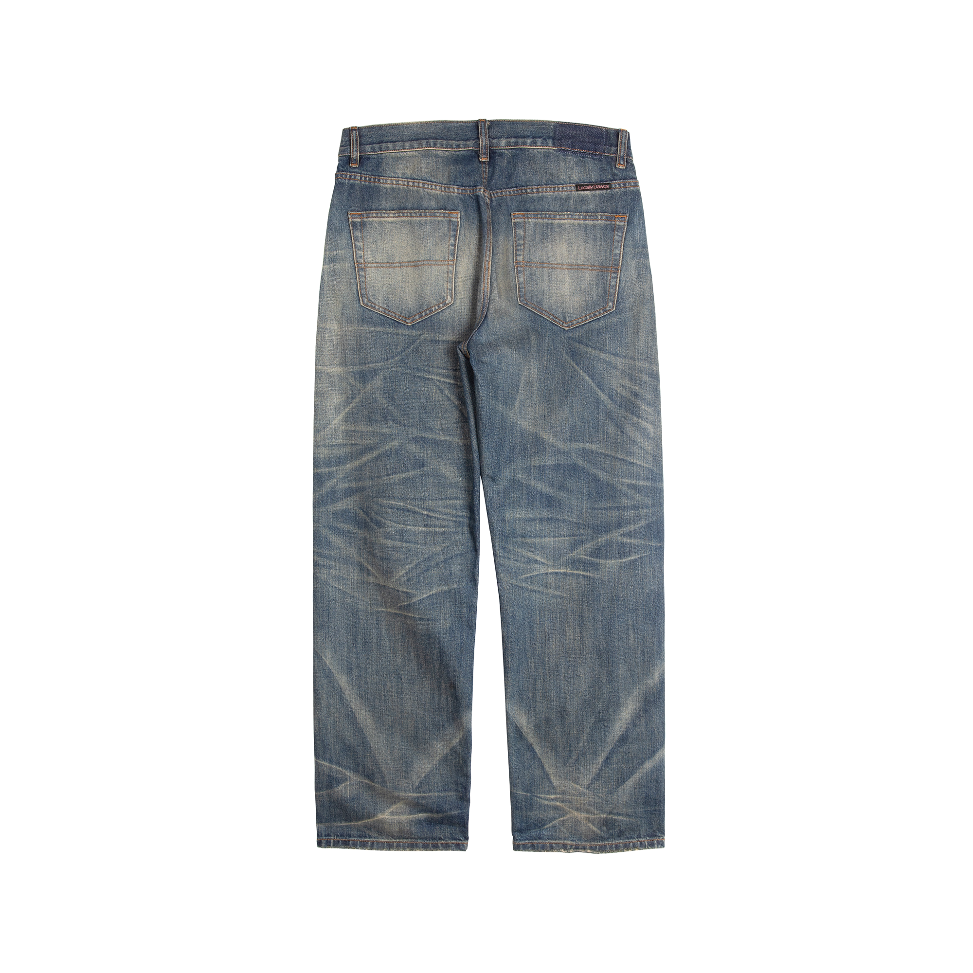LDS 手工猫须做旧复古自然水洗直筒布边赤耳牛仔长裤