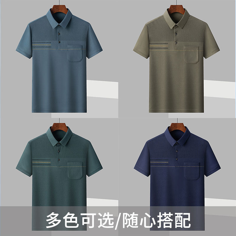 爸爸夏装短袖商务t恤男士夏季中老年冰丝polo衫男休闲爷爷套装