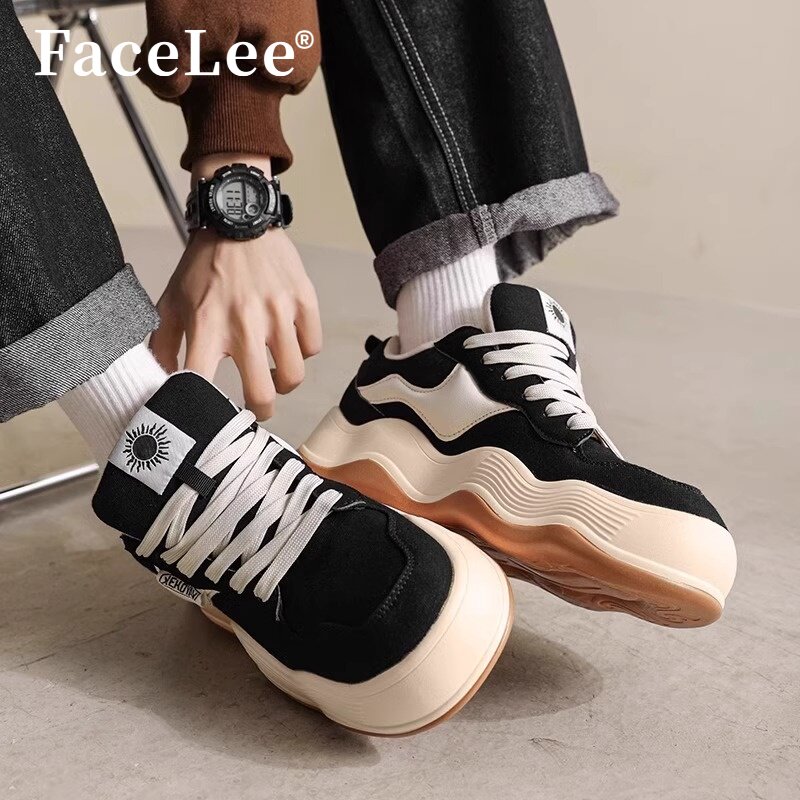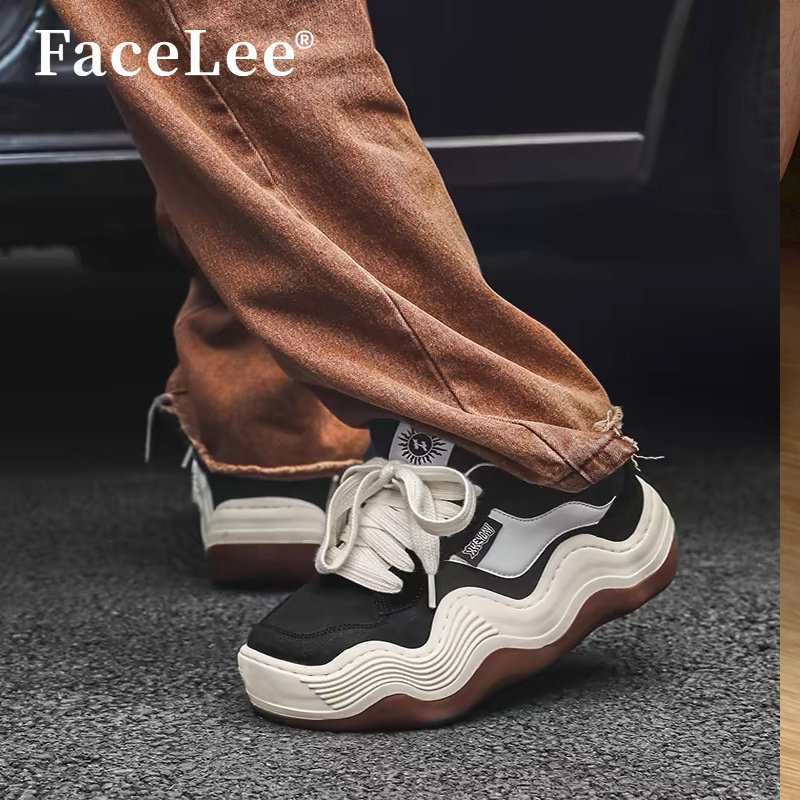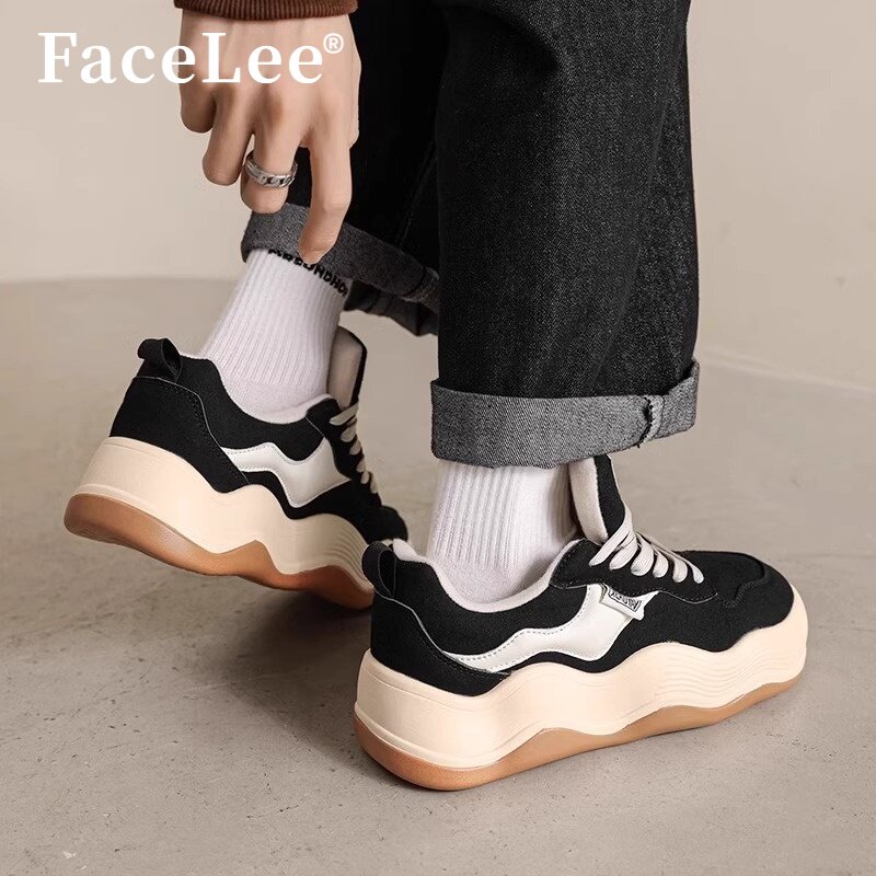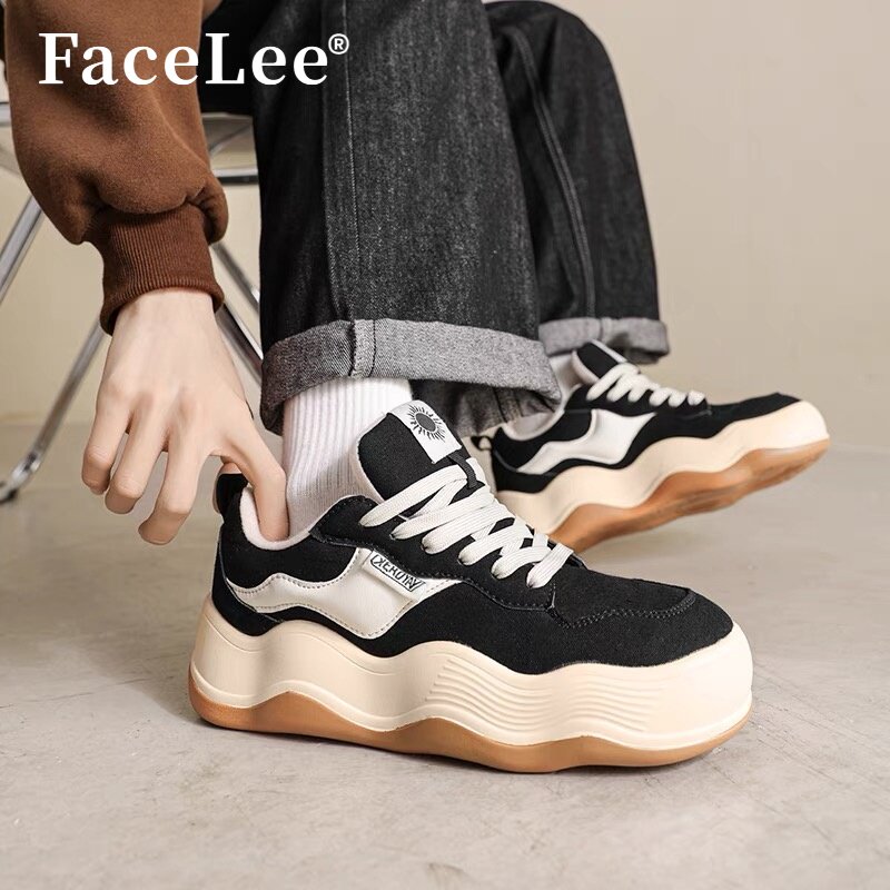 FaceLee明星同款春季新款厚底帆布鞋女面包鞋男波浪底增高休闲鞋