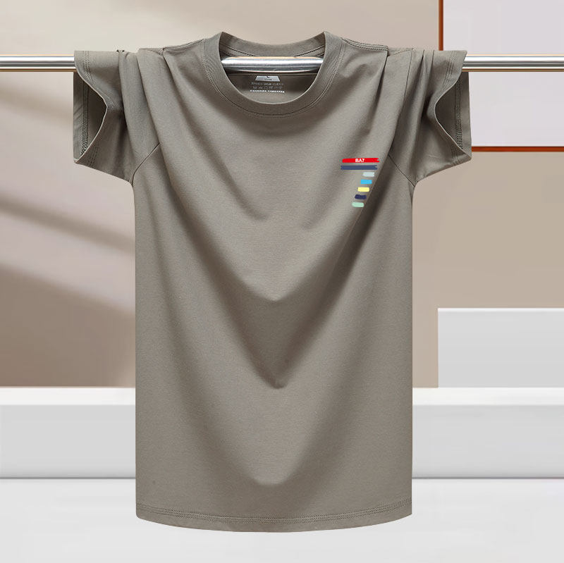 莫代尔棉冰丝短袖T恤男士红色休闲宽松上衣夏季大码弹力半袖男装