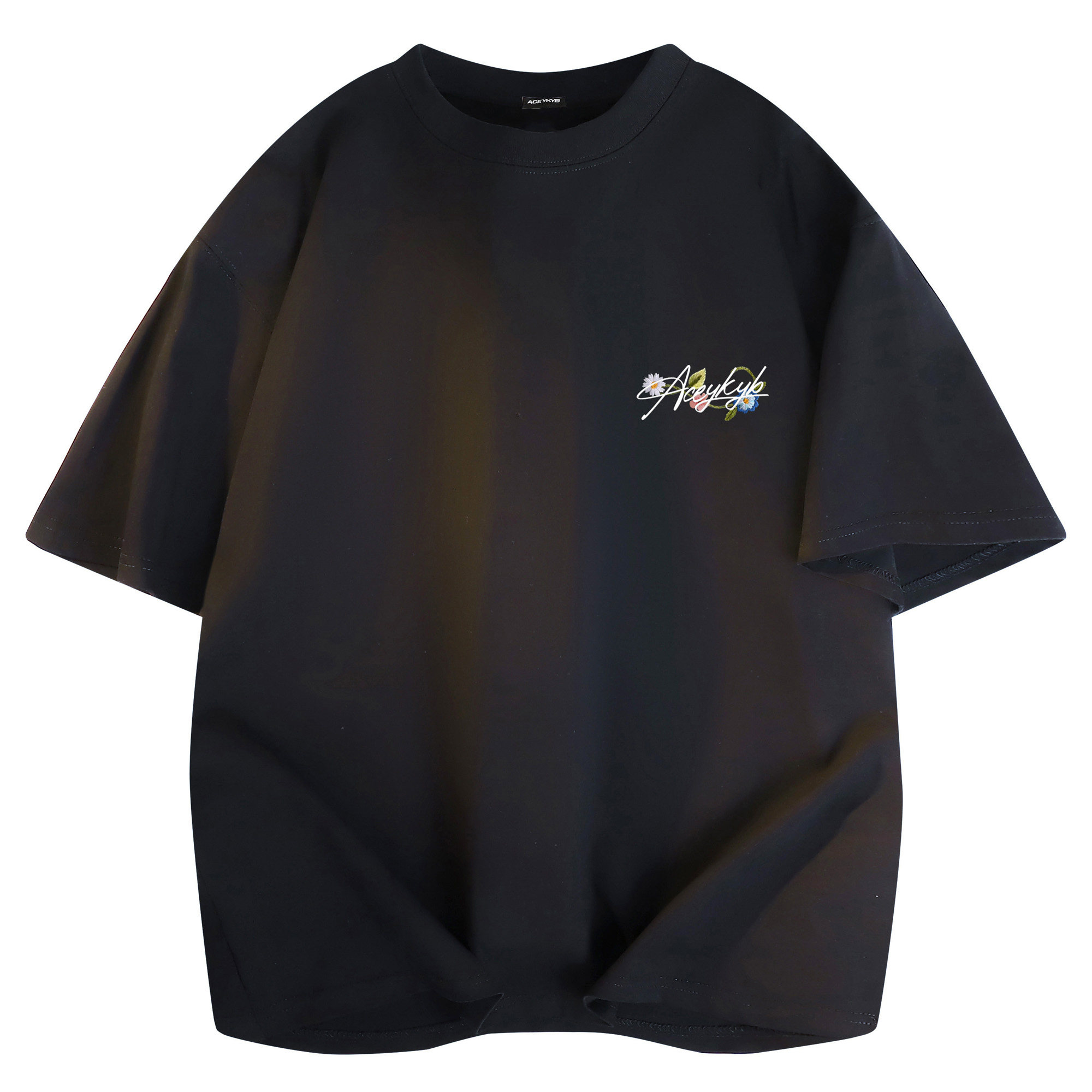YKYB黄子韬 夏季T恤背后花卉印花设计圆领宽松百搭短袖上衣潮流