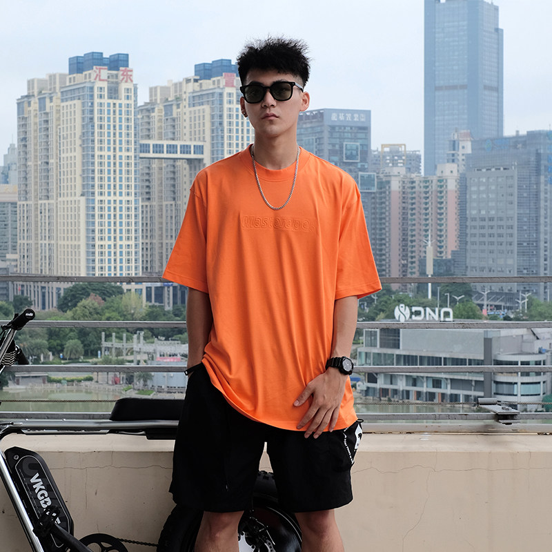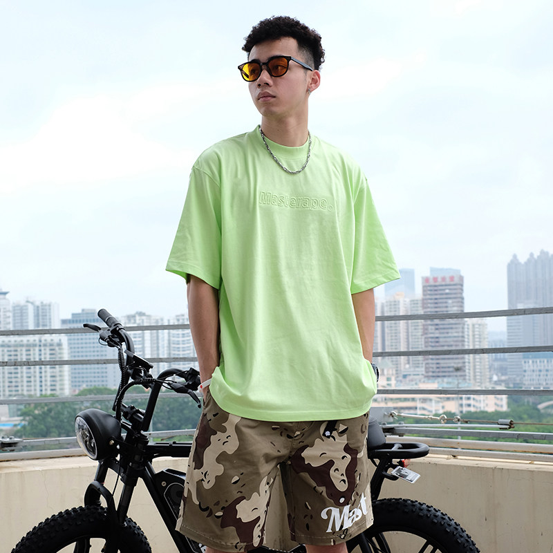 Masterape夏季新款国潮纯棉宽松美式休闲圆领印花纯色短袖T恤男