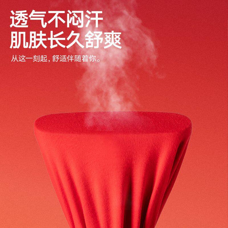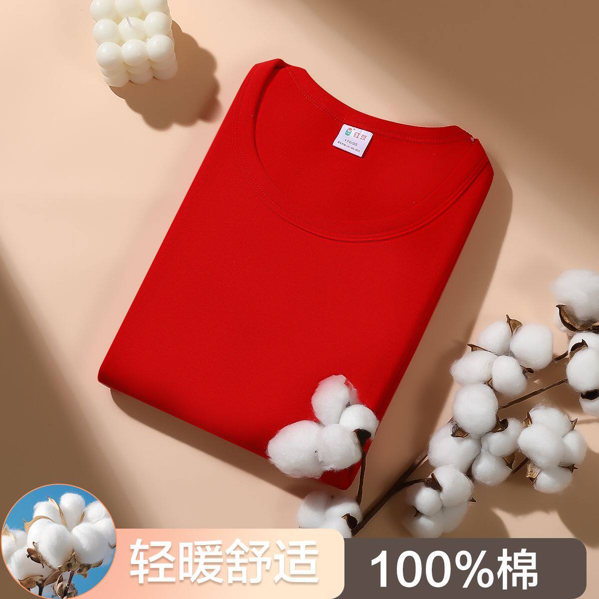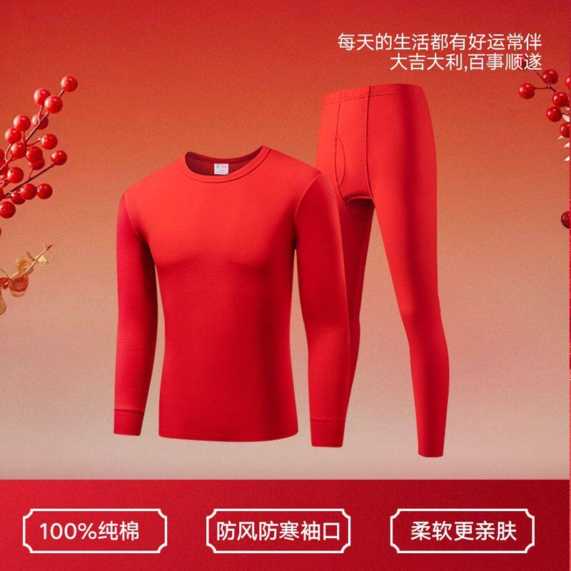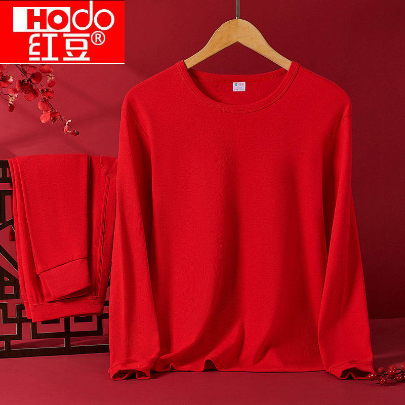 淘宝红豆本命年红色秋衣秋裤男士圆领内衣套装女士中领防寒保暖套蛇年