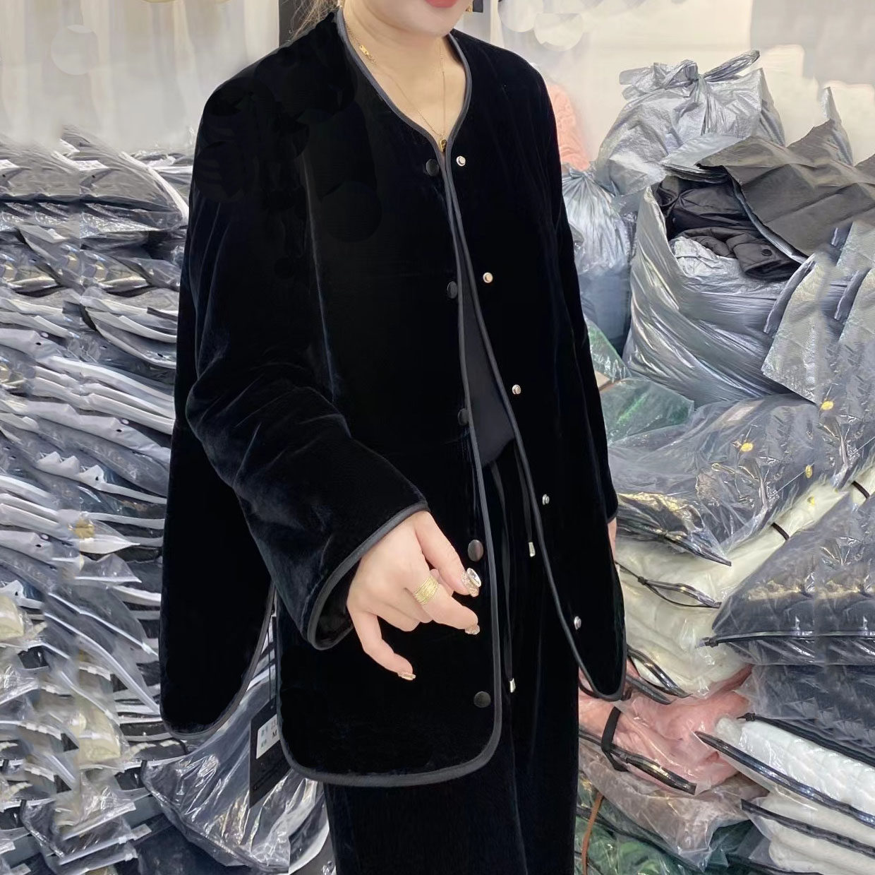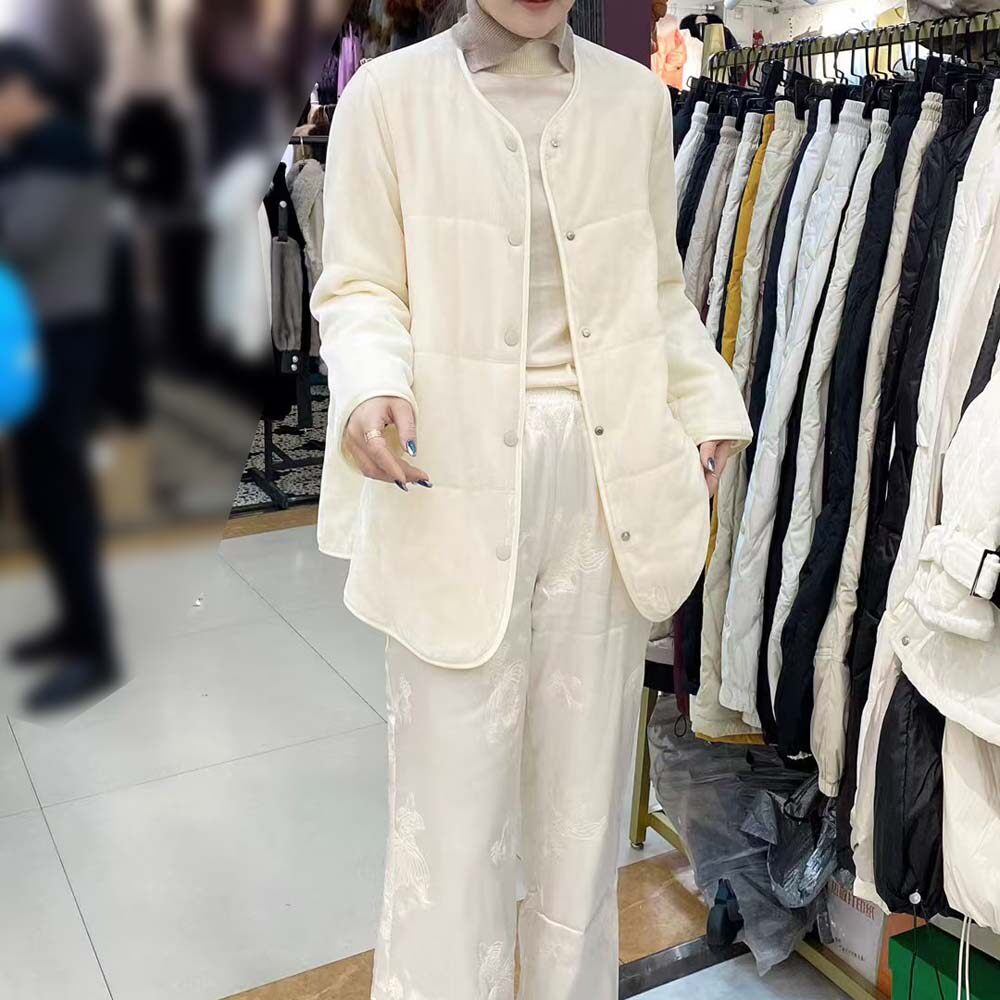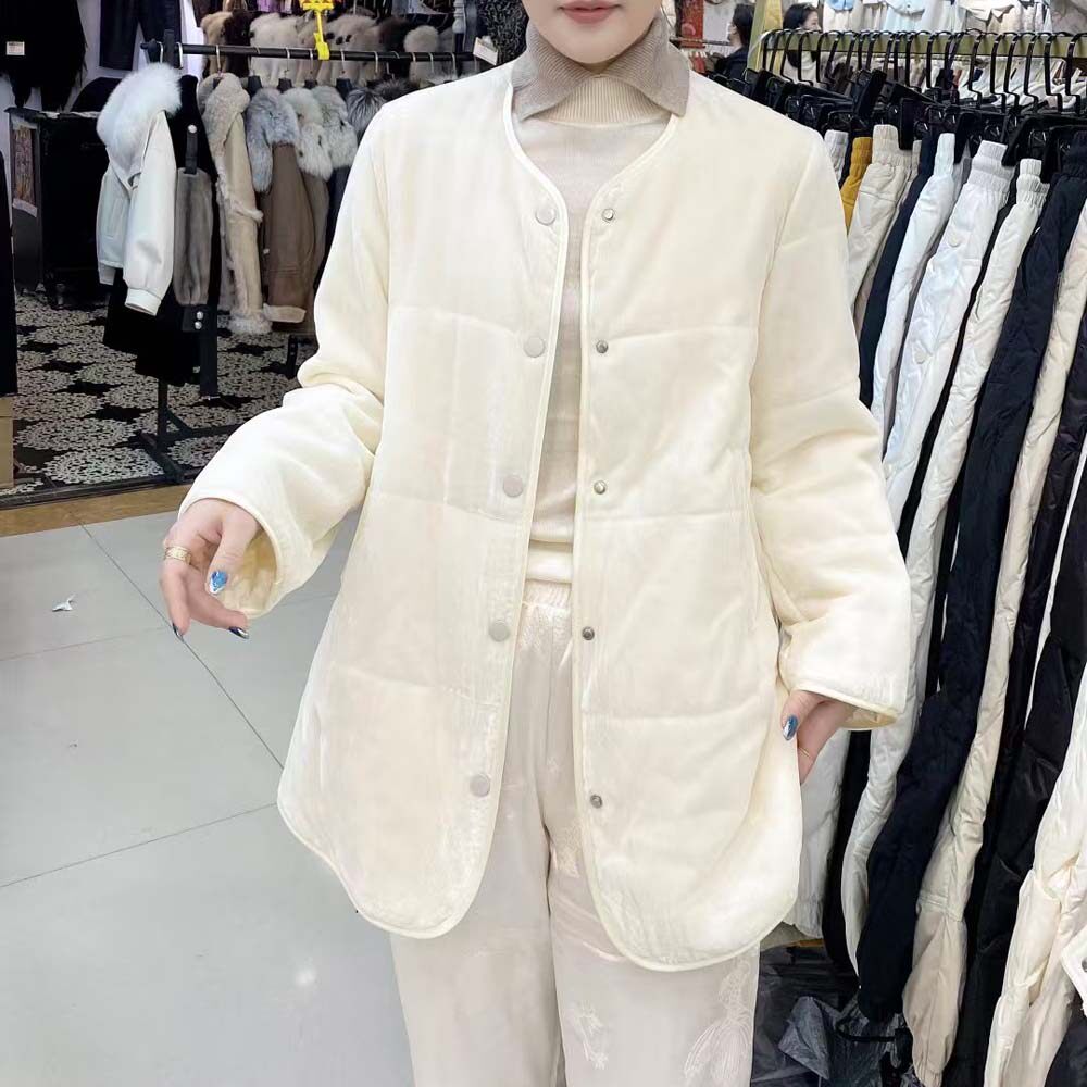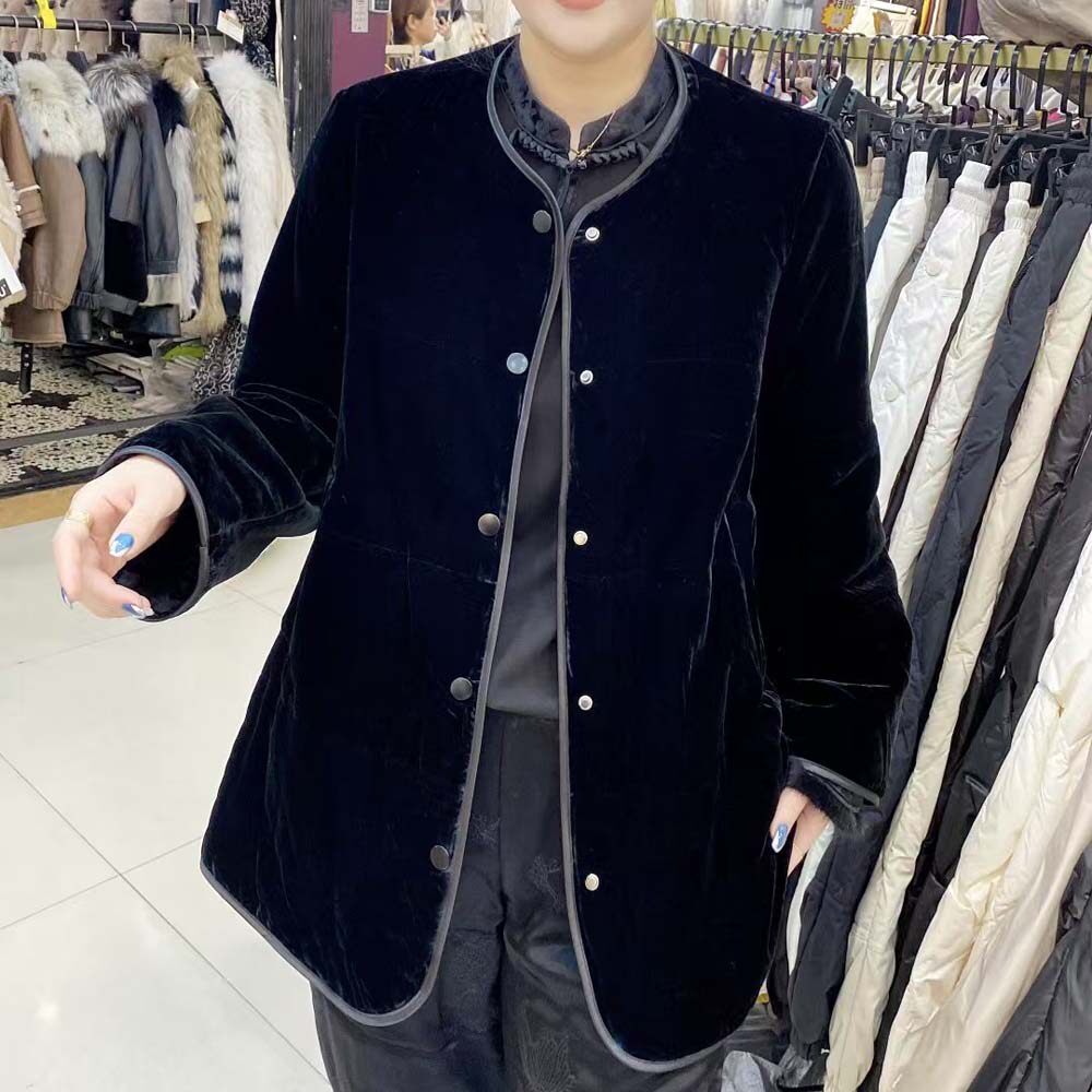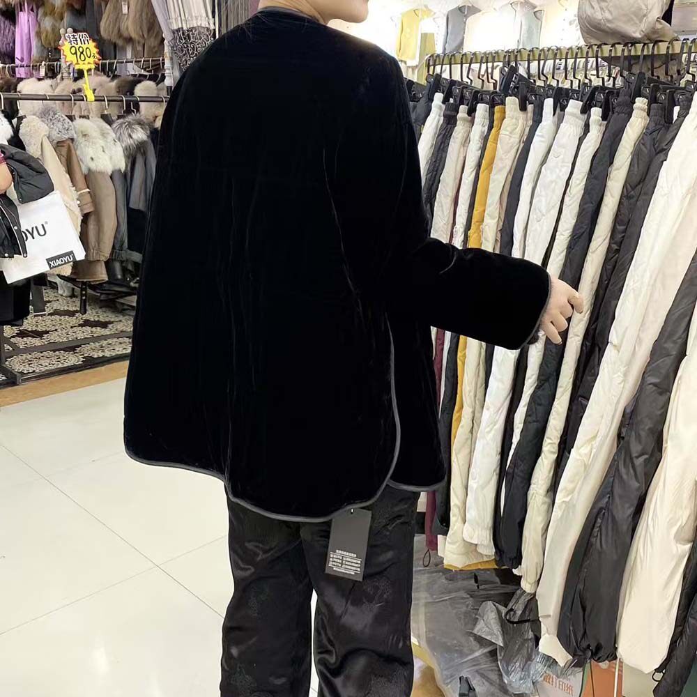 淘宝欧洲站2026秋冬新款休闲宽松真丝丝绒夹棉薄棉圆领包边外套棉衣女