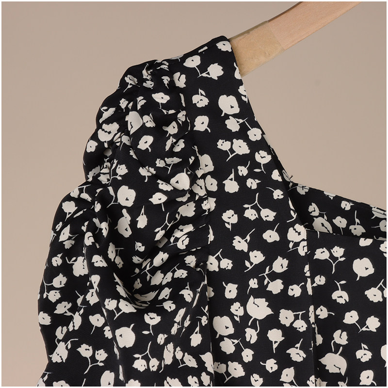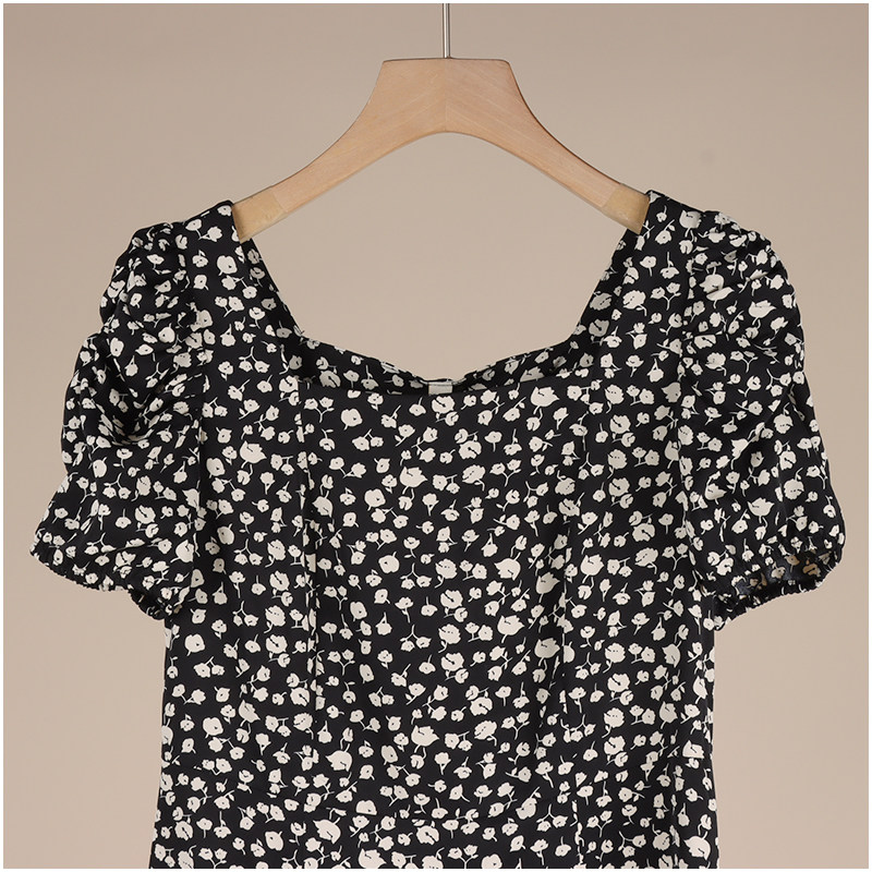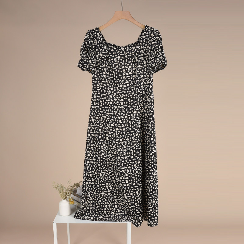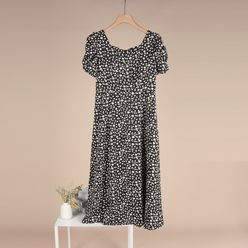 470夏季新款时尚气质修身显瘦方领印花减龄中长款连衣裙