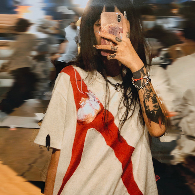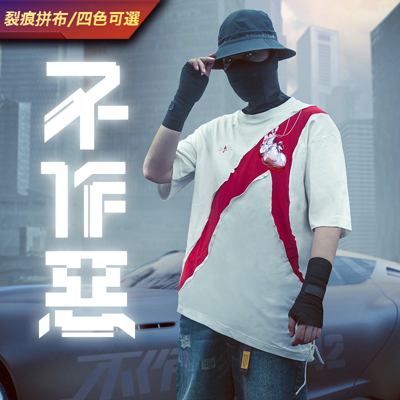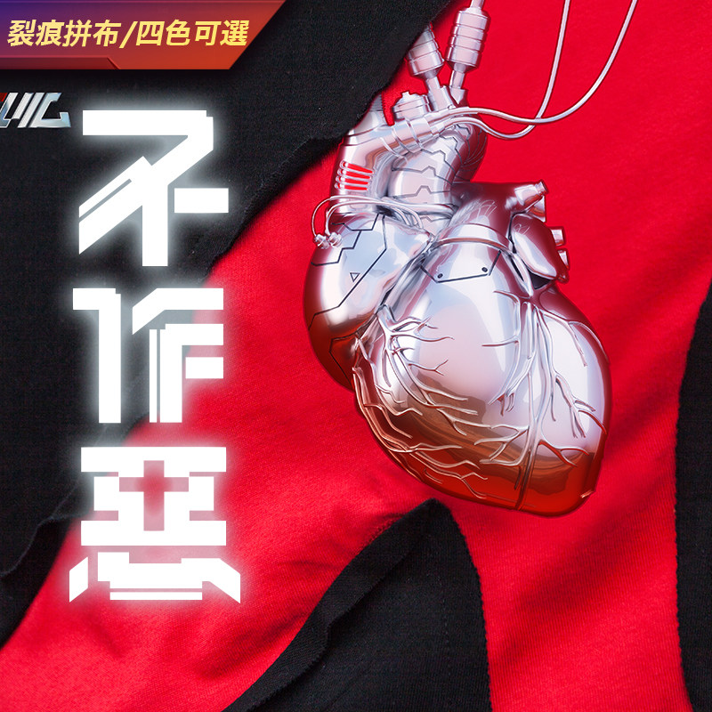 --------------------- 不作恶「义体之心」数码印赛博朋克机能风宽松街头圆领拼接Tee夏 【原售价】299元 【现售价】98元 【推荐理由】