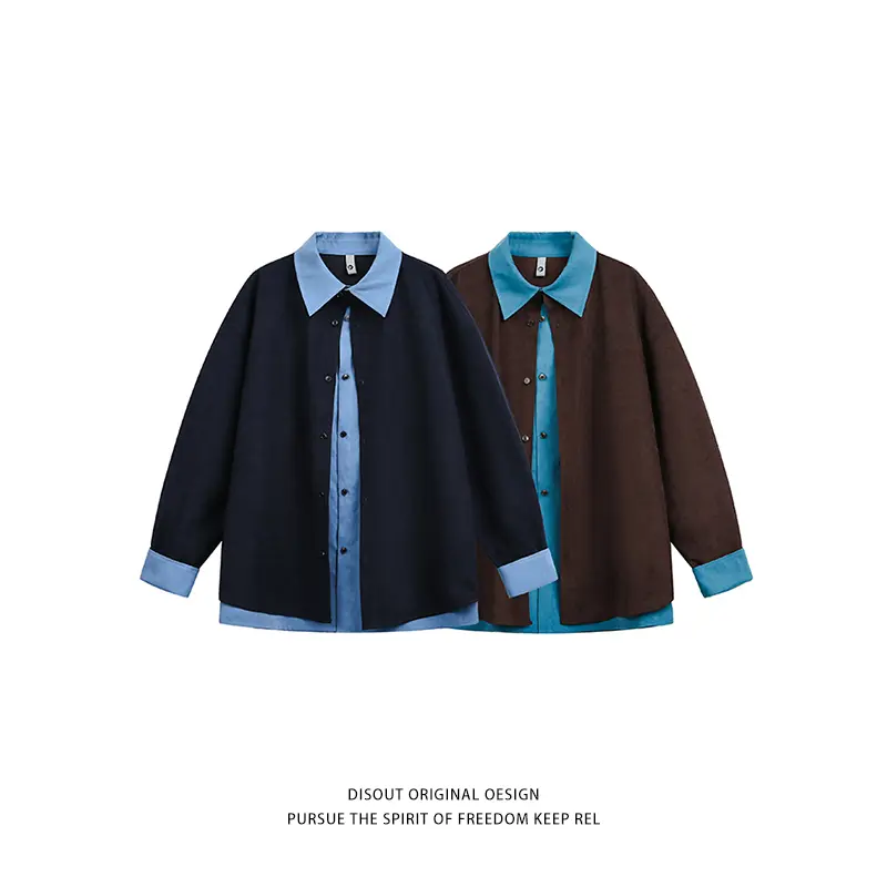 --------------------- 休闲长袖春季假两件拼接宽松痞帅撞色长袖衬衫男女同款 【原售价】69元 【现售价】69元 【推荐理由】
