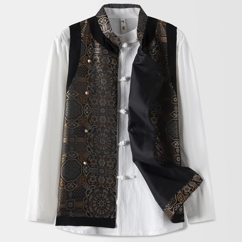 --------------------- 秋季唐装男无袖坎肩男士宽松国潮织锦缎提花背心马褂中式刺绣马甲 【原售价】458元 【现售价】227元 【推荐理由】