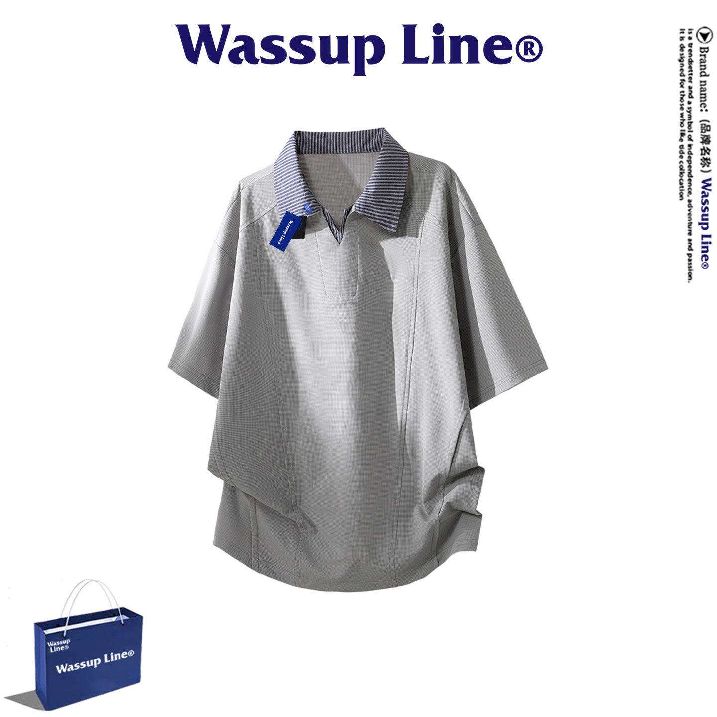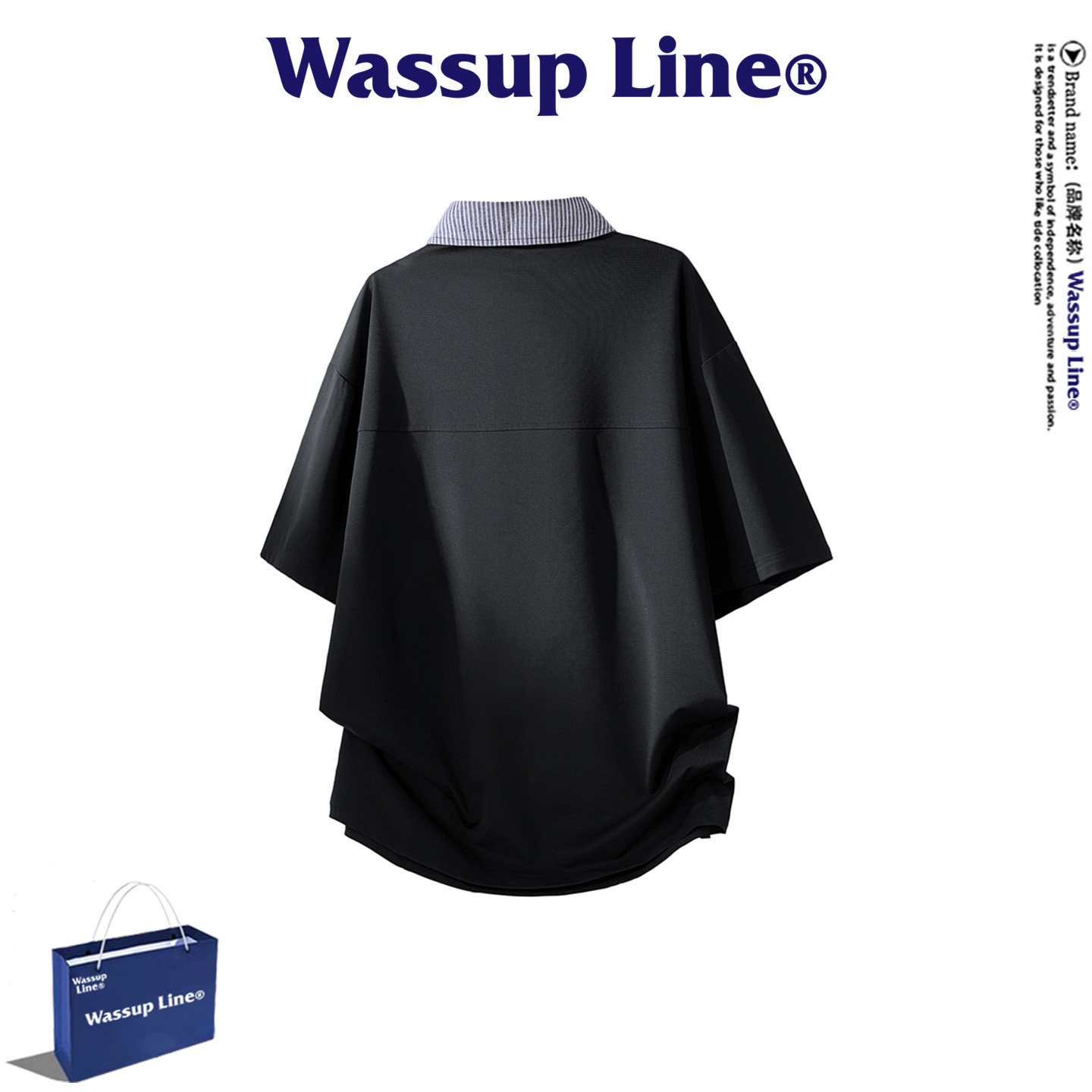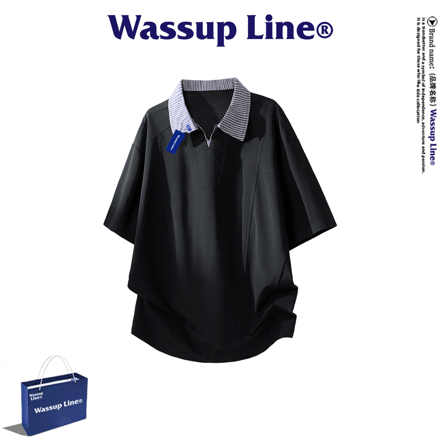 --------------------- WASSUP Line潮牌休闲短袖T恤男夏季潮流撞色翻领上衣舒适POLO衫 【原售价】398元 【现售价】77.4元 【推荐理由】