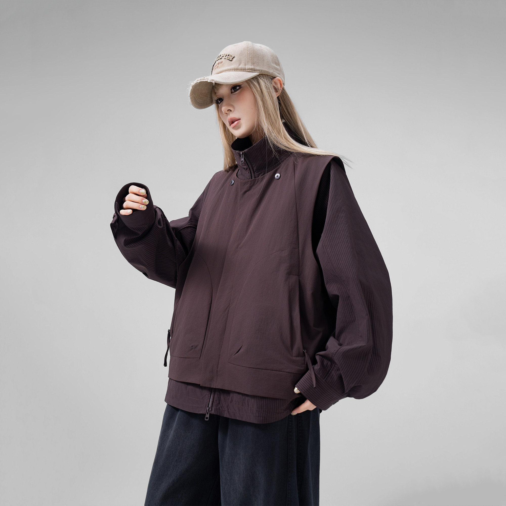 AOGZ美式假两件可拆卸马甲外套春新款男女设计感三合一上衣外套潮
