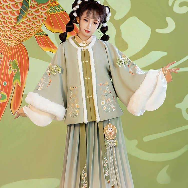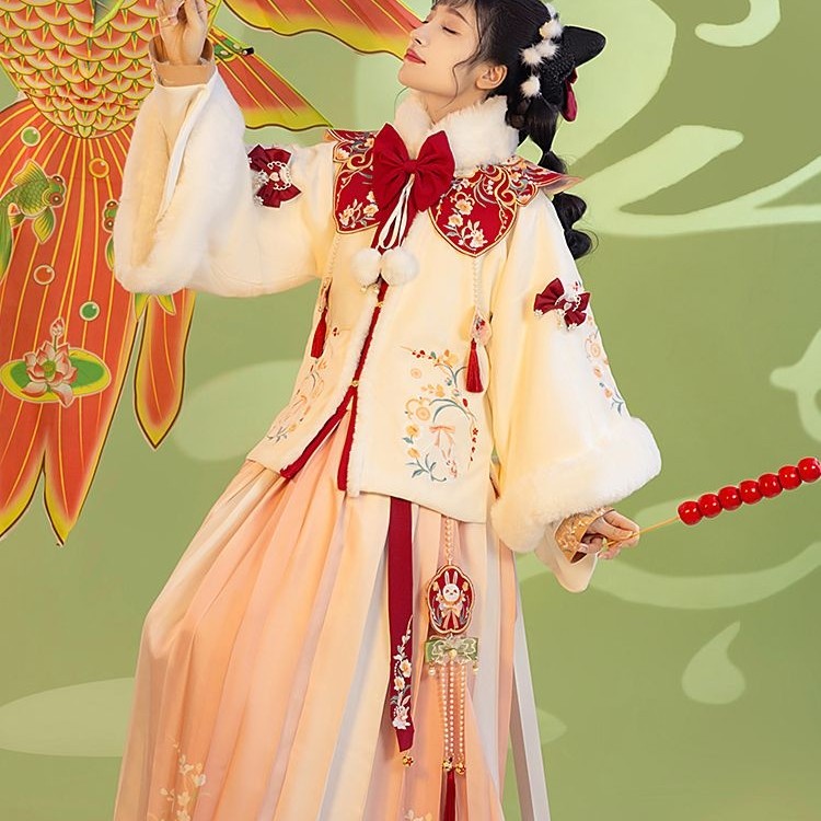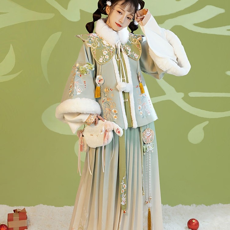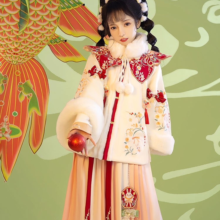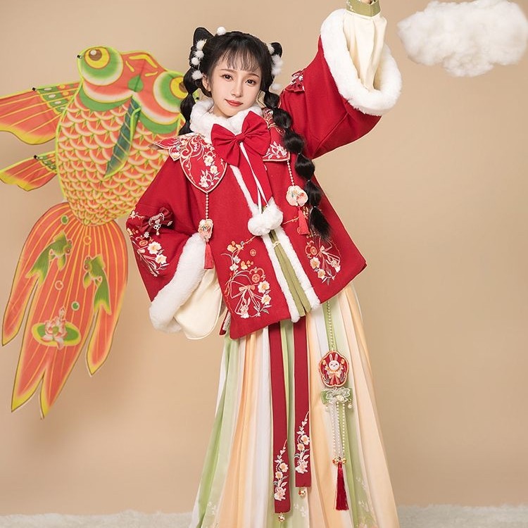 淘宝原创汉服新公主(暖呼呼)明制冬款加绒圆领袄云肩百褶裙套装