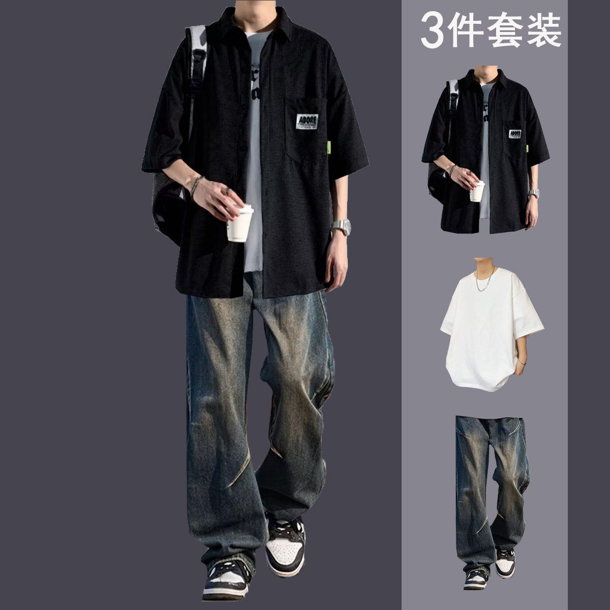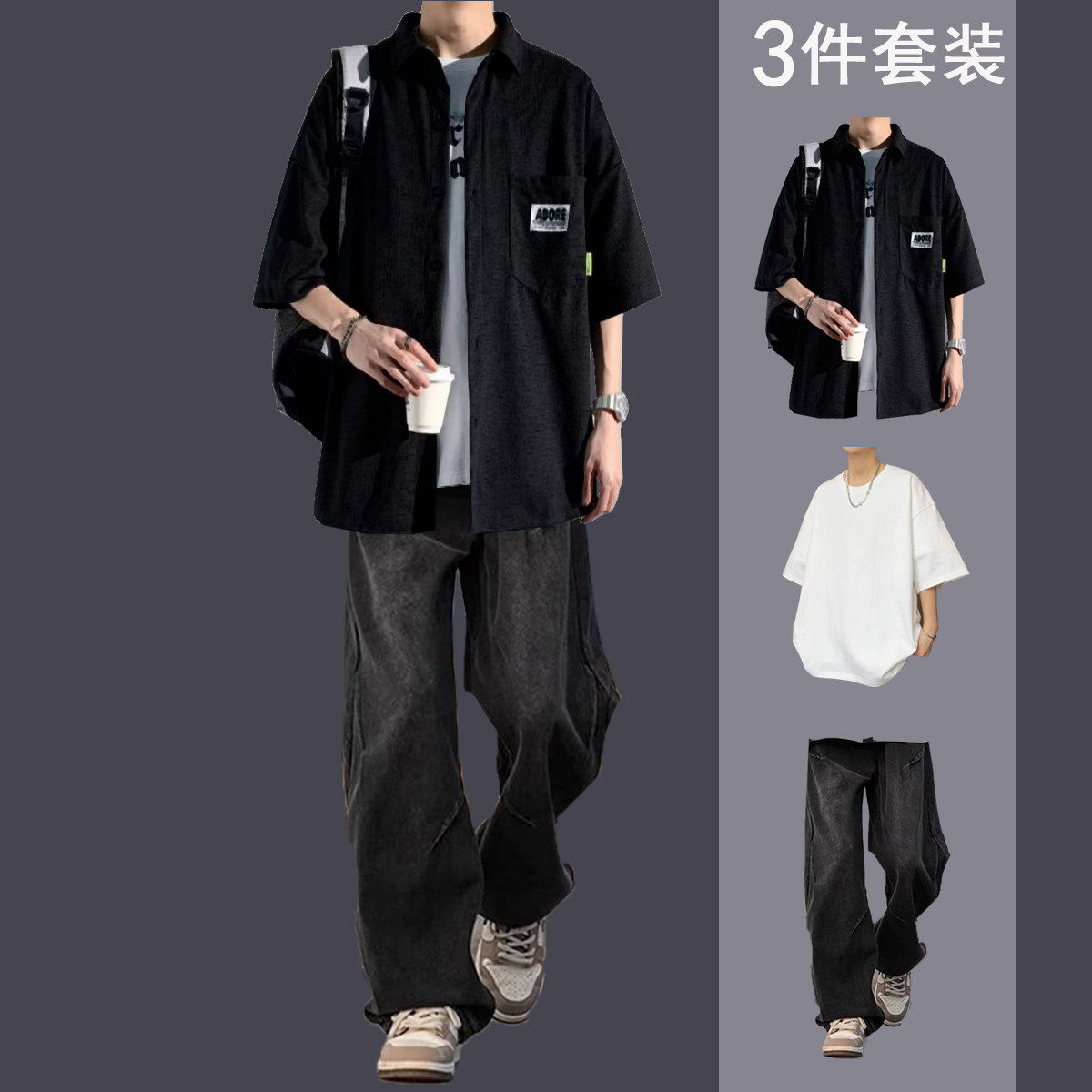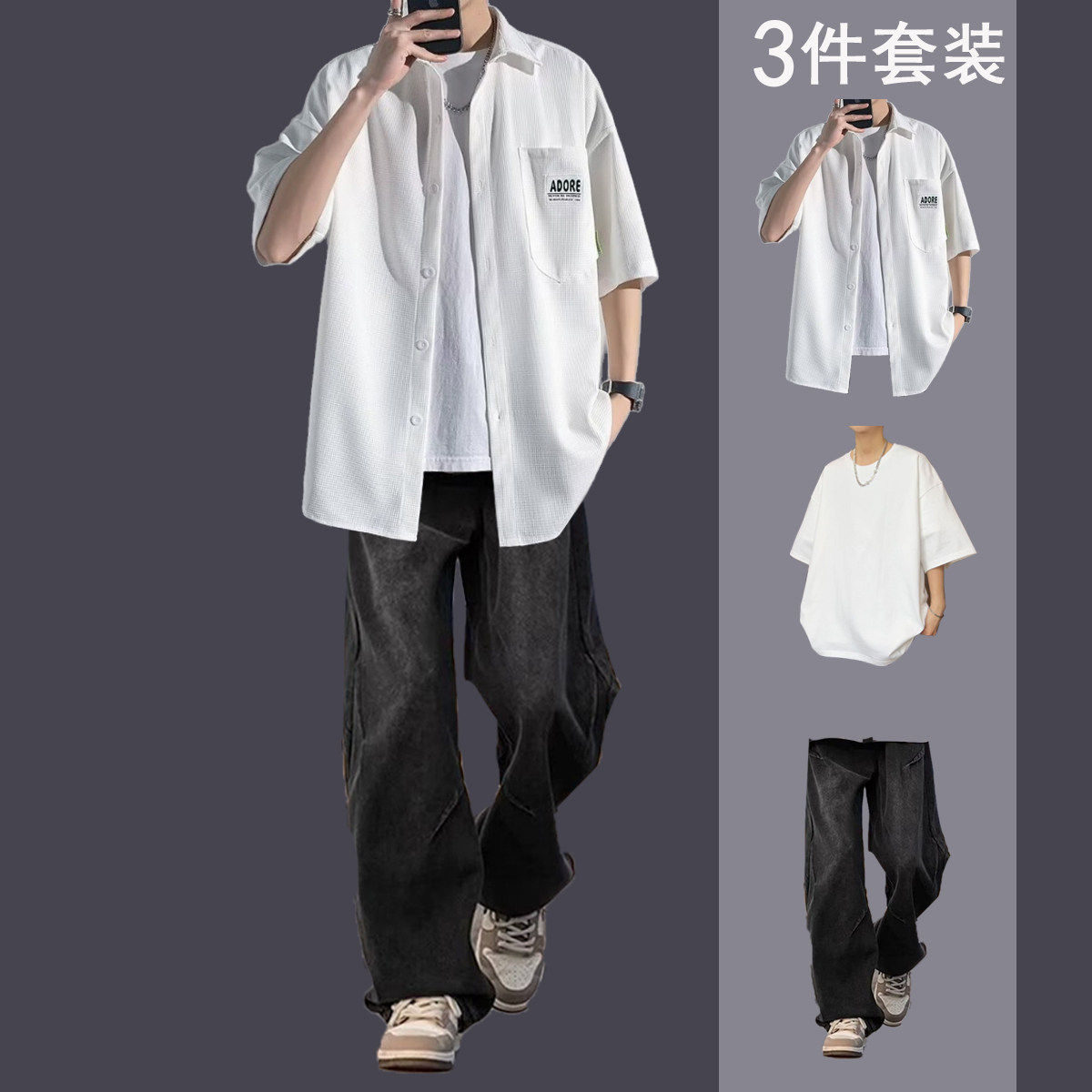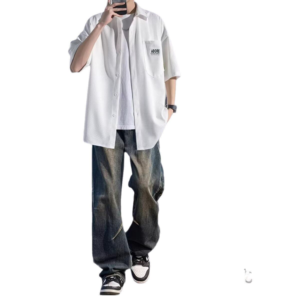 bentidea 华夫格短袖衬衫男士夏季港风感帅气休闲搭配一套痞帅
