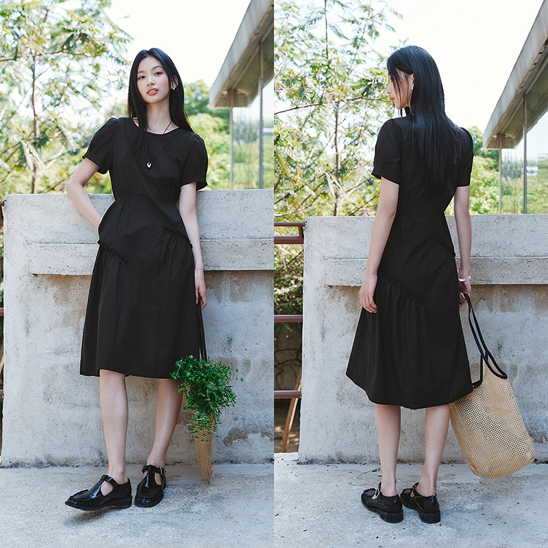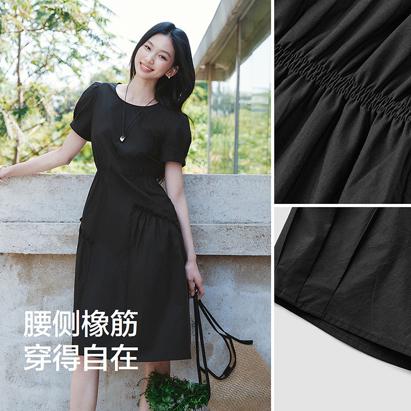 --------------------- [商场同款]森马连衣裙女设计感不规则2025夏新款木耳边收腰中长裙 【原售价】259元 【现售价】139元 【推荐理由】