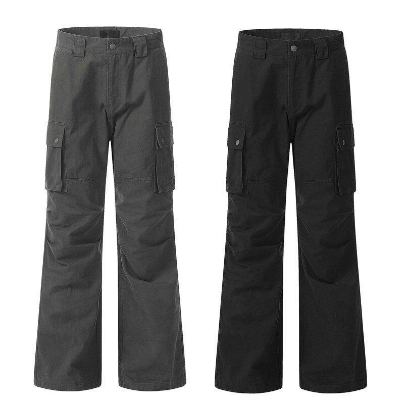 记得加辣 国潮复古美式微喇休闲裤高街男女设计感工装裤直筒裤子