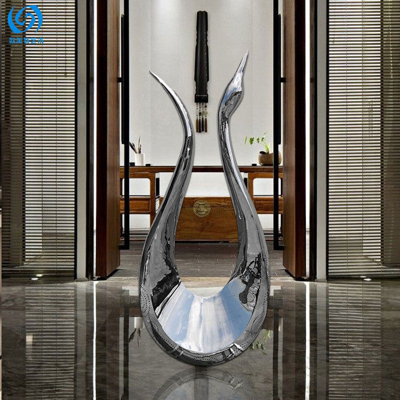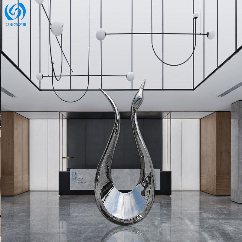 营销部不锈钢镜面水景天鹅雕塑摆件购物中心动物景观软装饰品订购