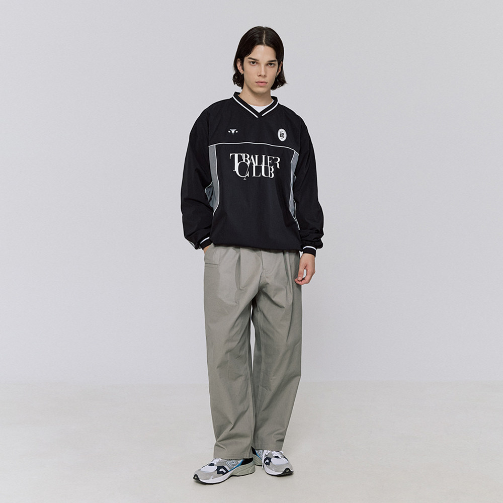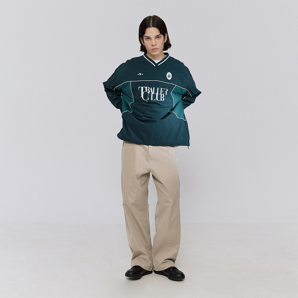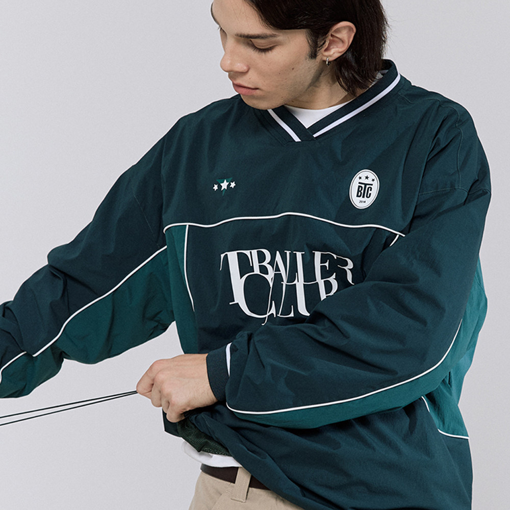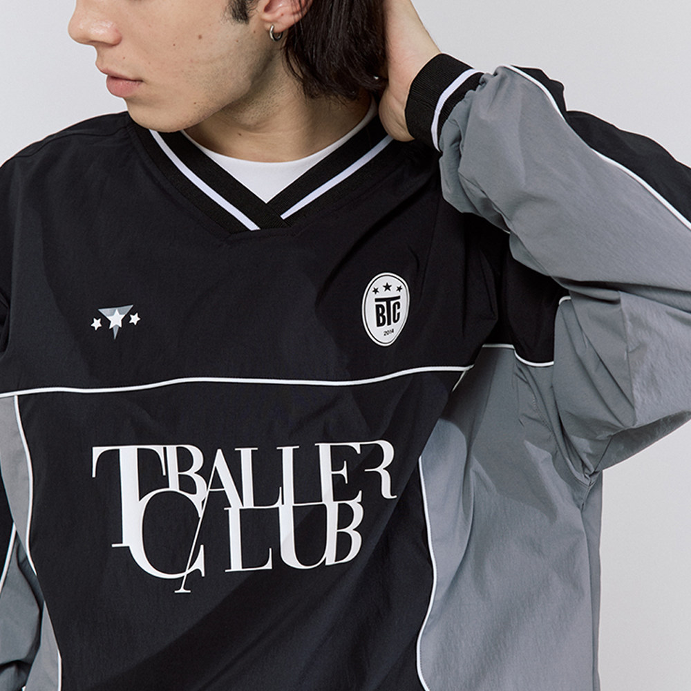 TBALLER 2024新款v领梭织足球运动衫男长袖潮牌日系撞色blokecore