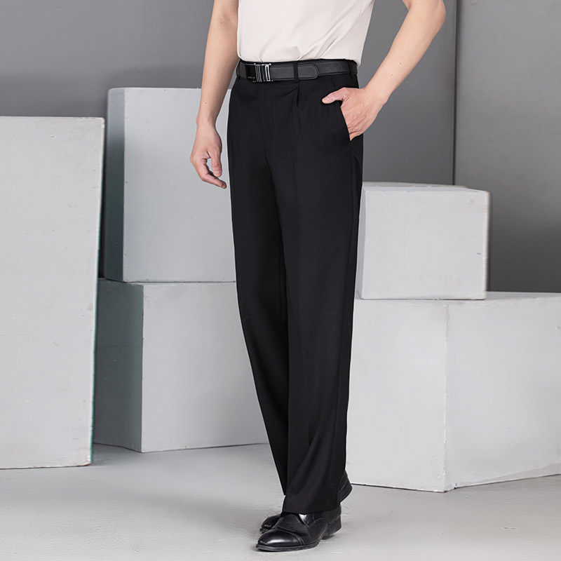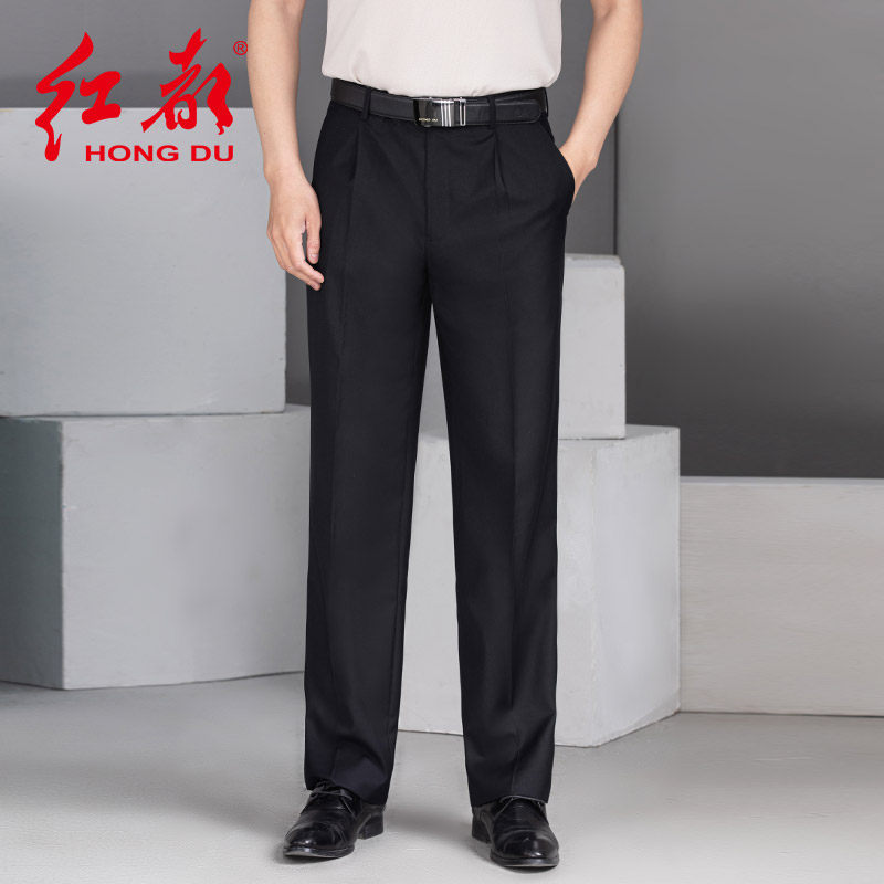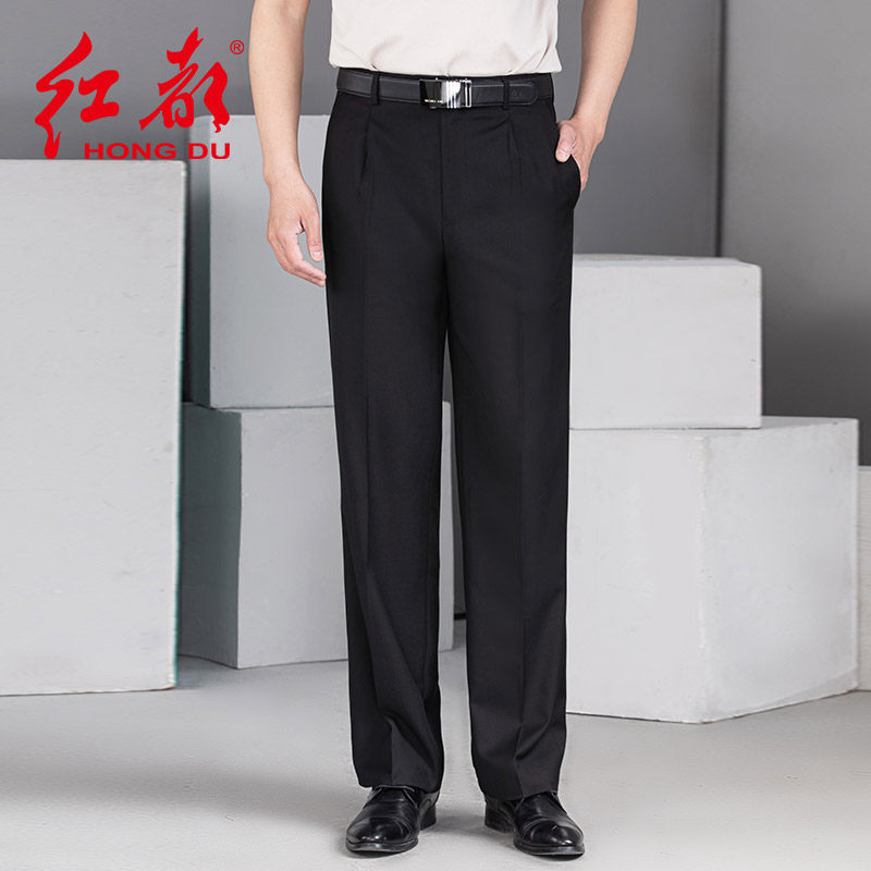 淘宝红都新款夏装薄款男士西裤单褶宽松西装裤商务高腰中年直筒男装裤