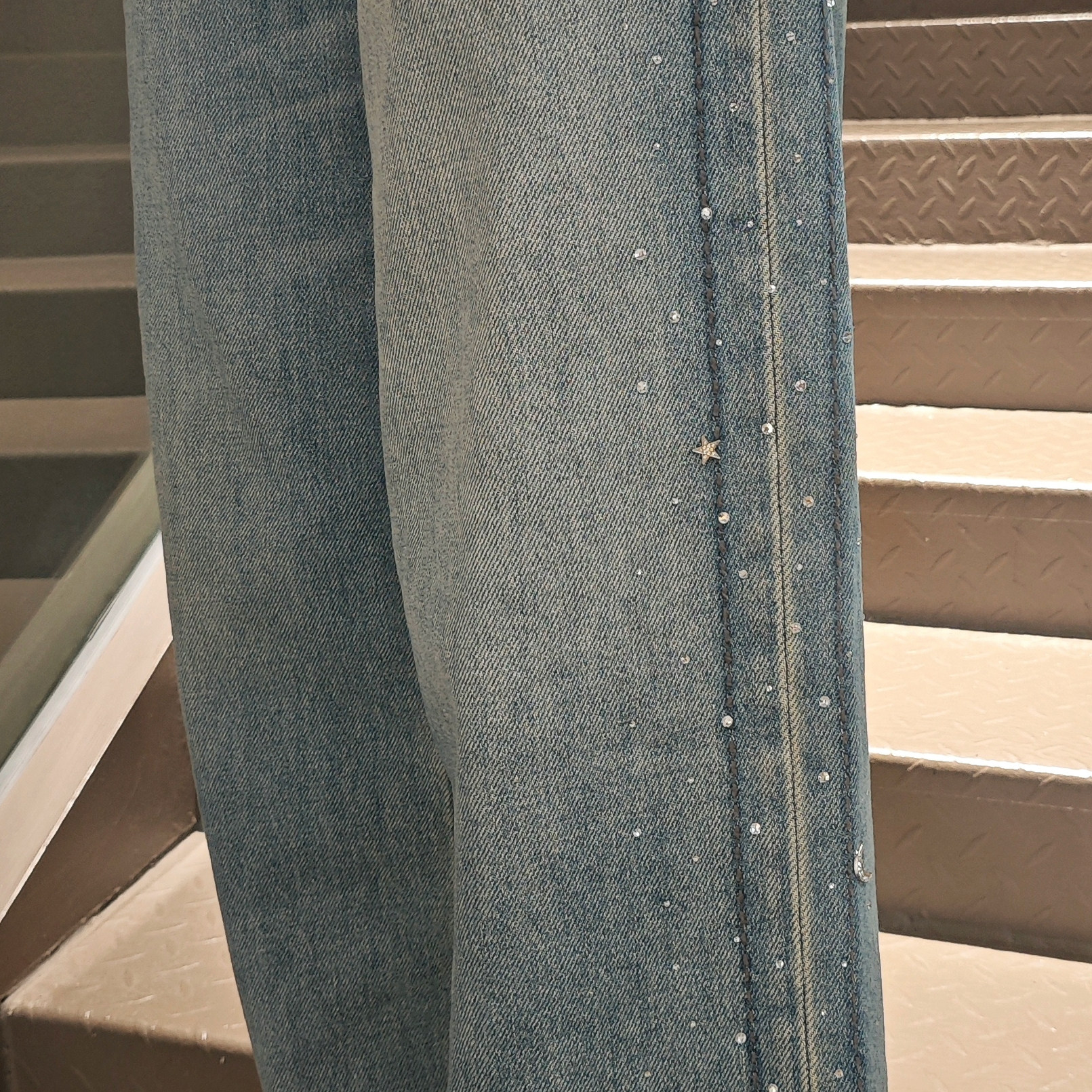《晶晶定制》时尚百搭显瘦设计感小众直筒长款牛仔裤Z33315