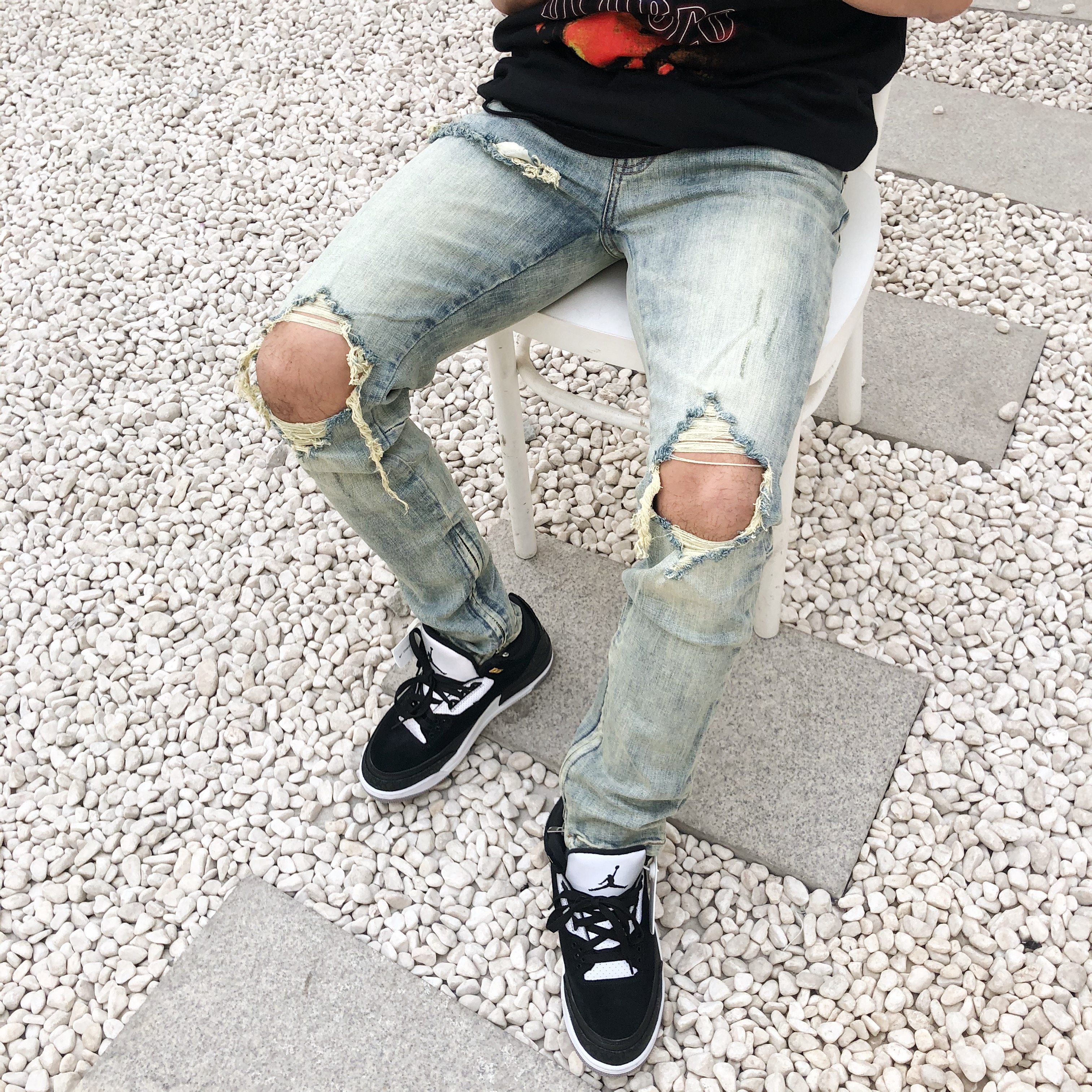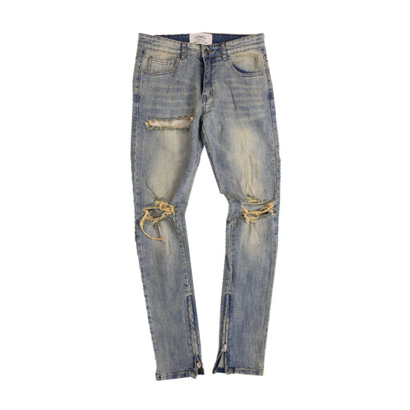 --------------------- AKAMA新款高街kanye破洞裤潮流复古泛黄破坏修身小脚拉链牛仔裤男 【原售价】185元 【现售价】185元 【推荐理由】