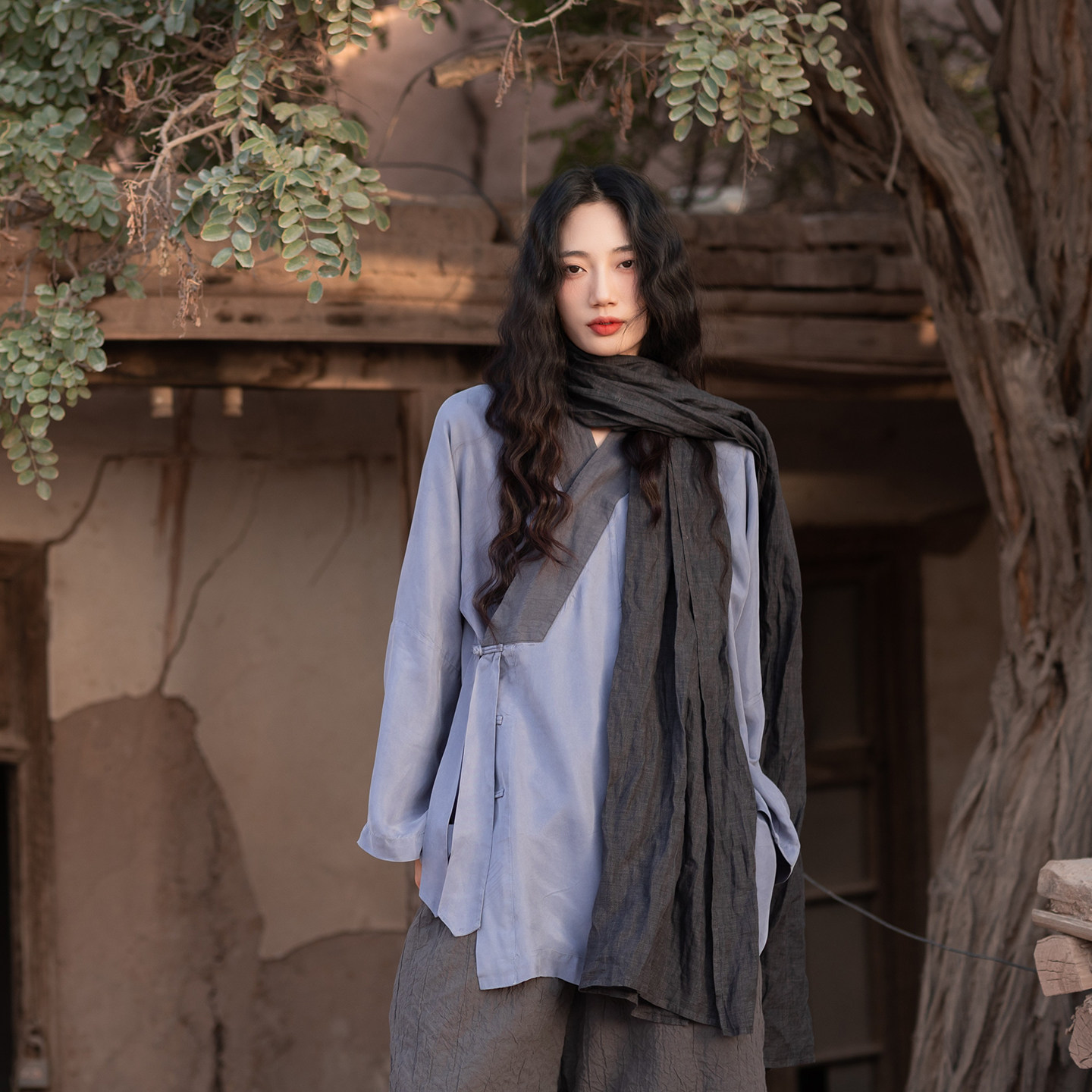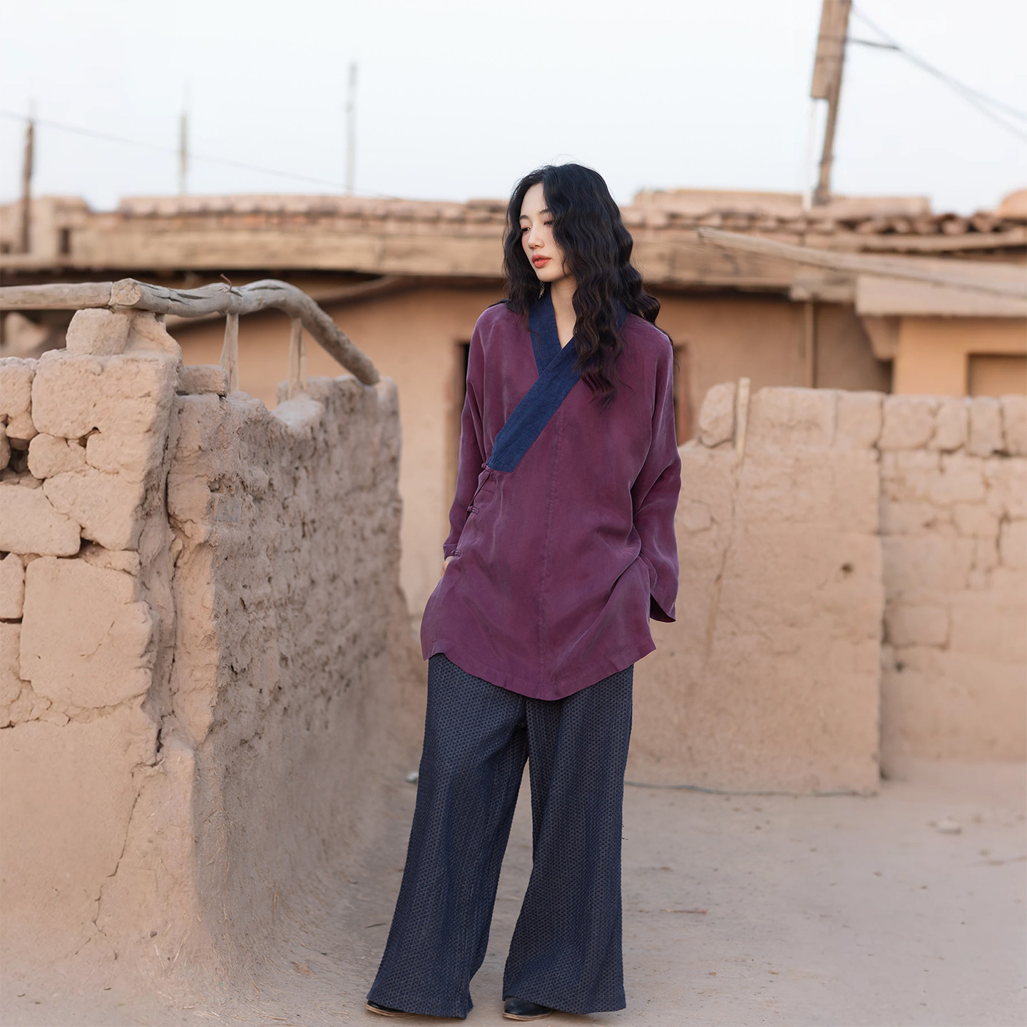 --------------------- 大拙禅意国风国潮撞色宽松款铜氨丝斜襟盘扣禅服衬衫240227 【原售价】550元 【现售价】495元 【推荐理由】