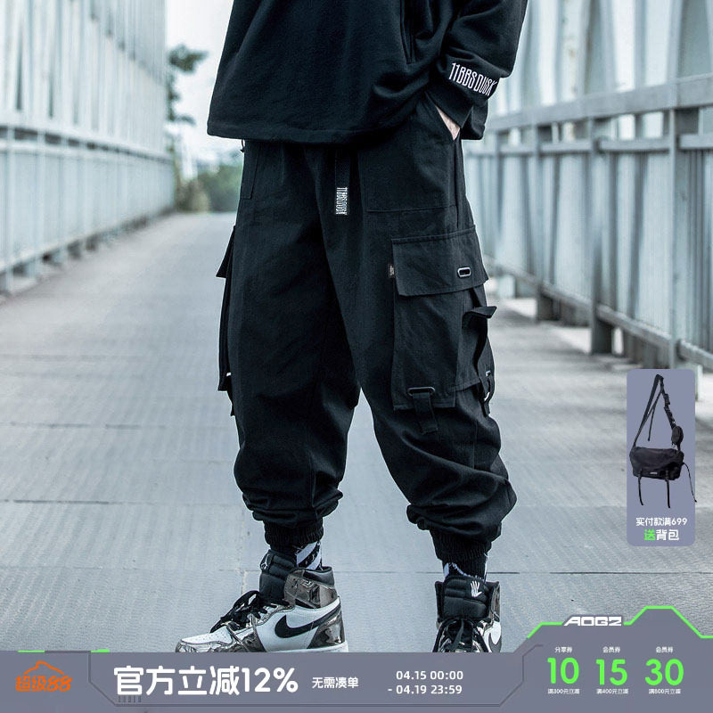 AOGZ国潮牌机能风工装裤男春秋美式嘻哈宽松休闲长裤高街束脚裤子