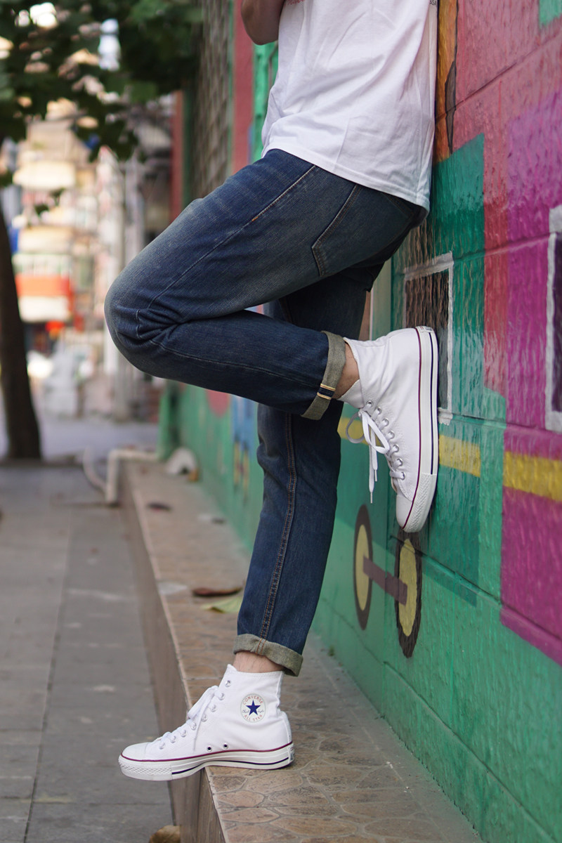 --------------------- 国潮蓝色手工洗水红边布9分小脚直筒修身悠闲赤耳丹宁牛仔裤酱潮 【原售价】619元 【现售价】108.8元 【推荐理由】