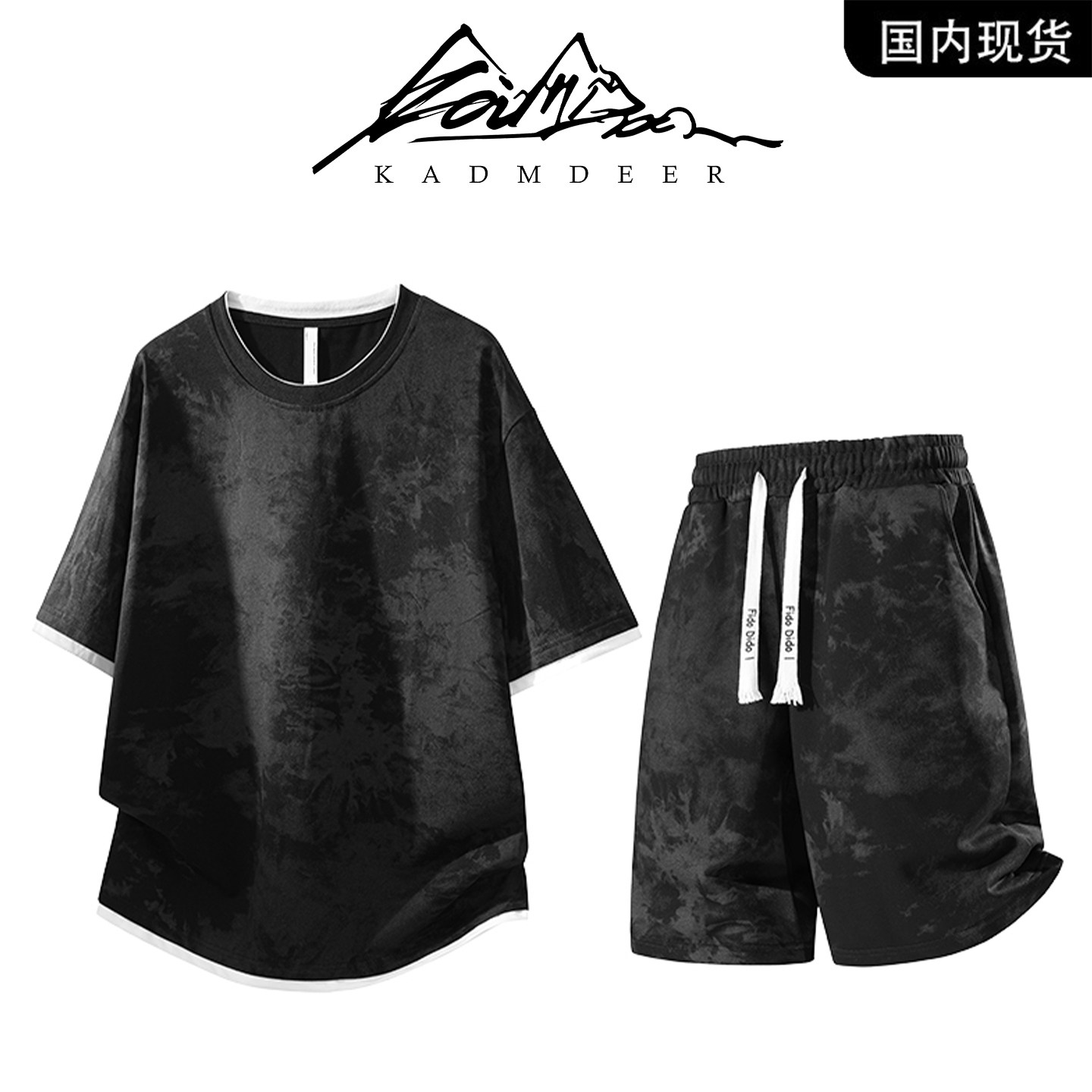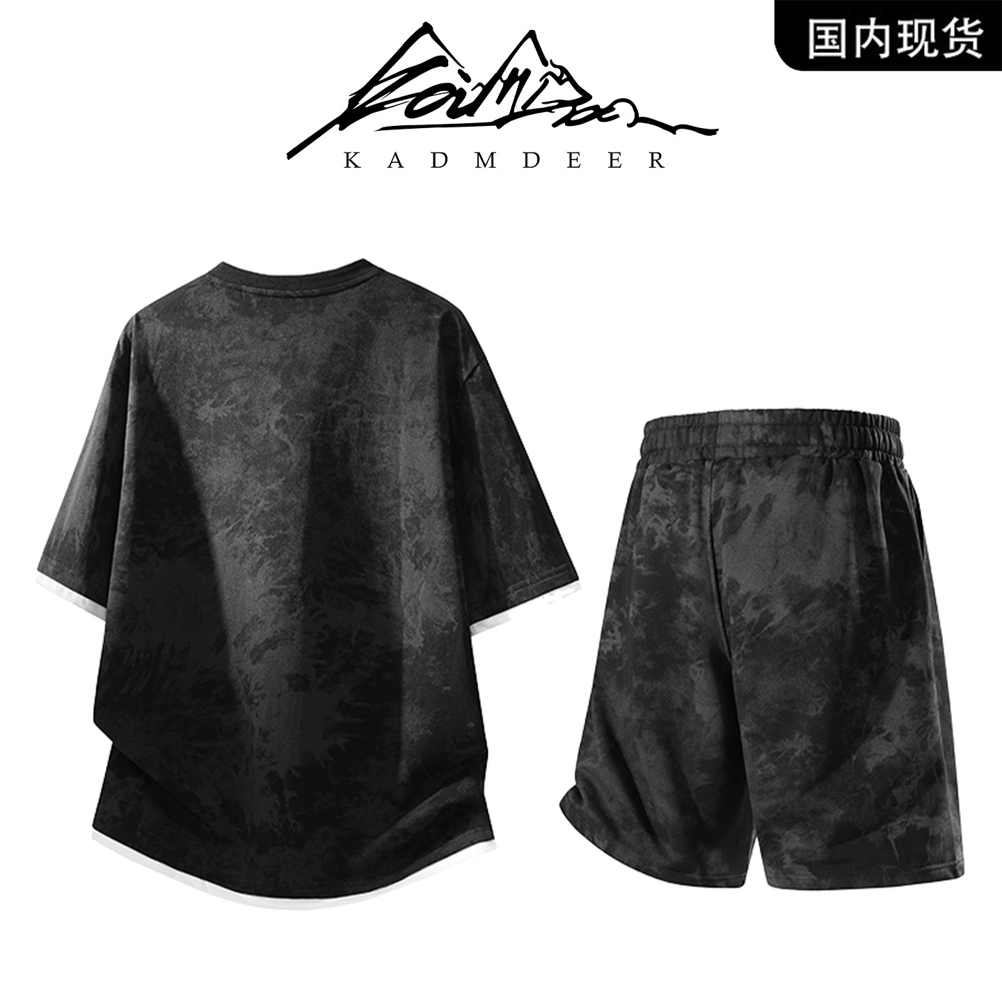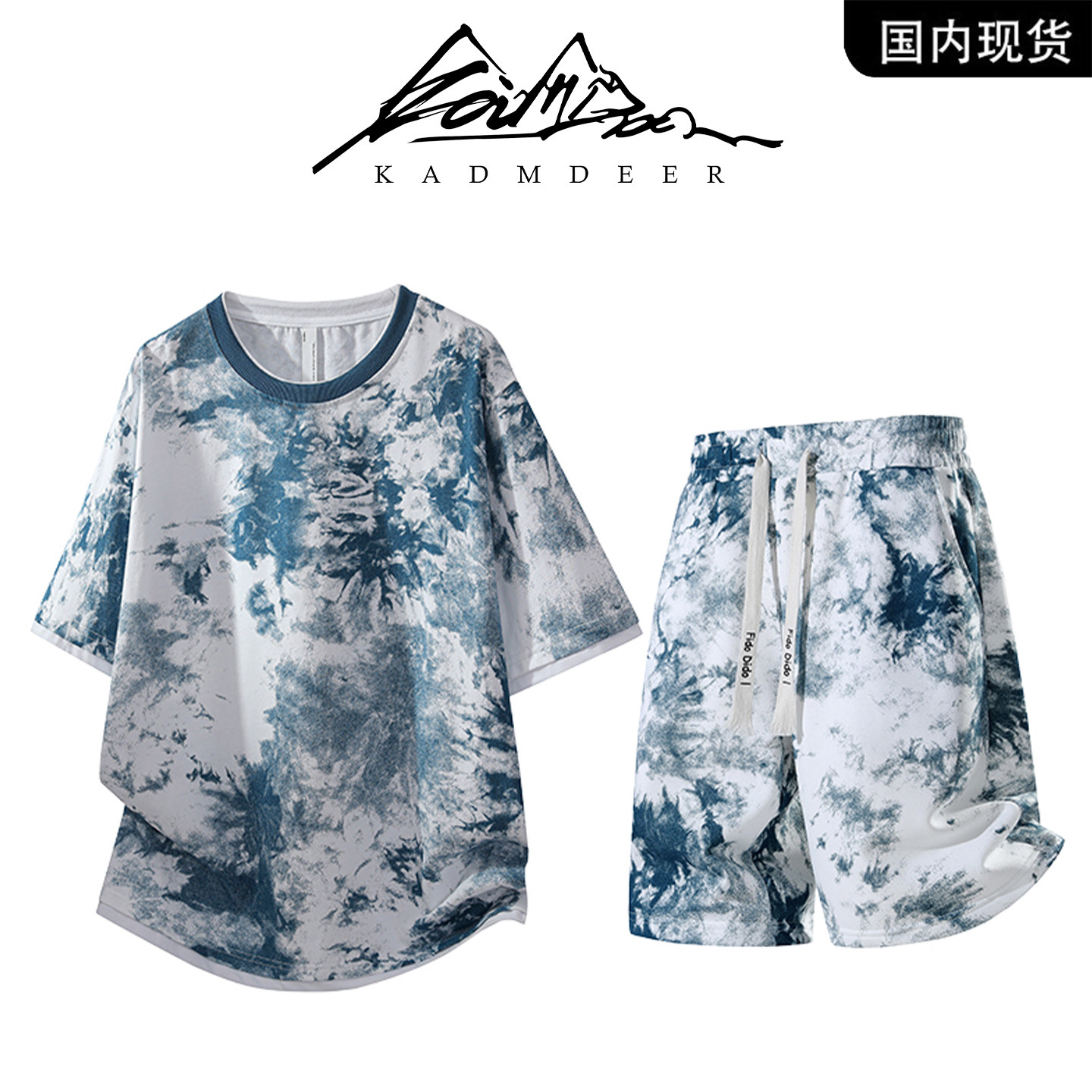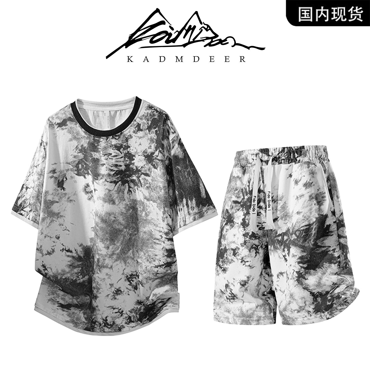 【品牌现货撤柜】KADM DEER扎染短袖T恤短裤套装男休闲运动两件套