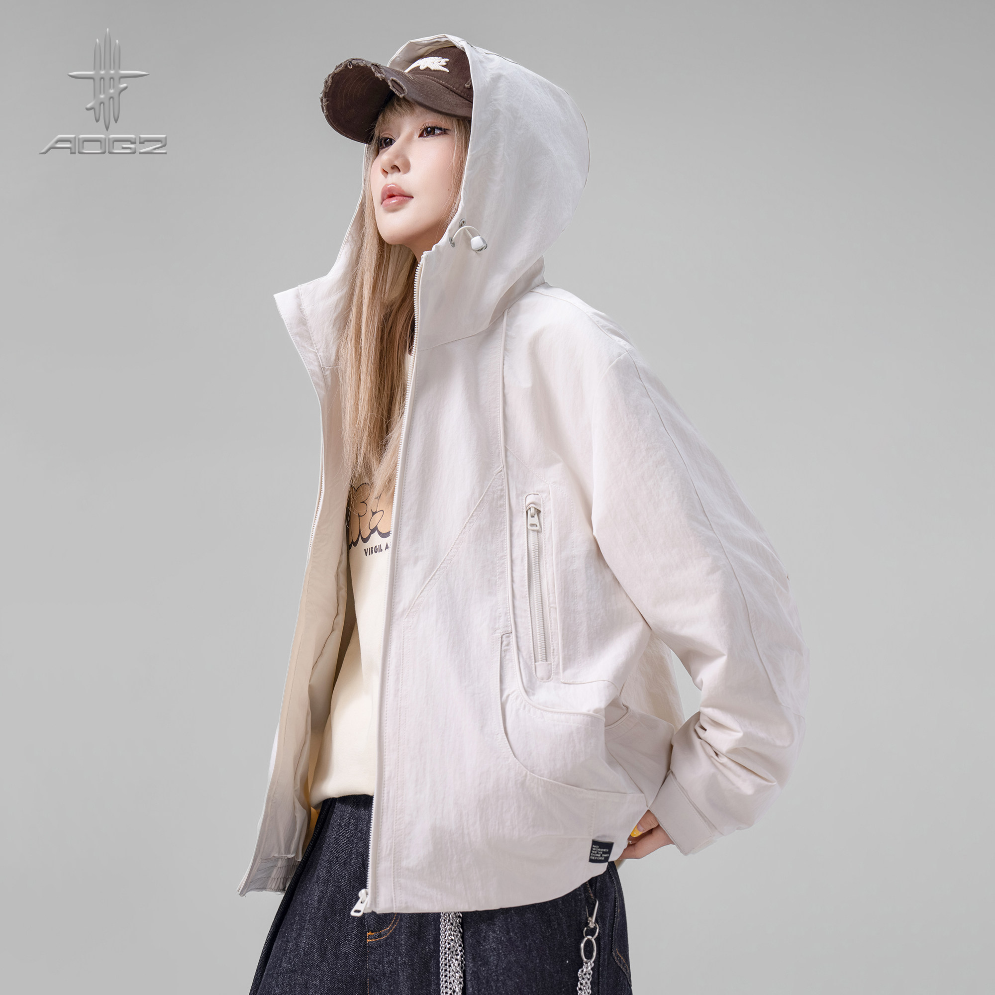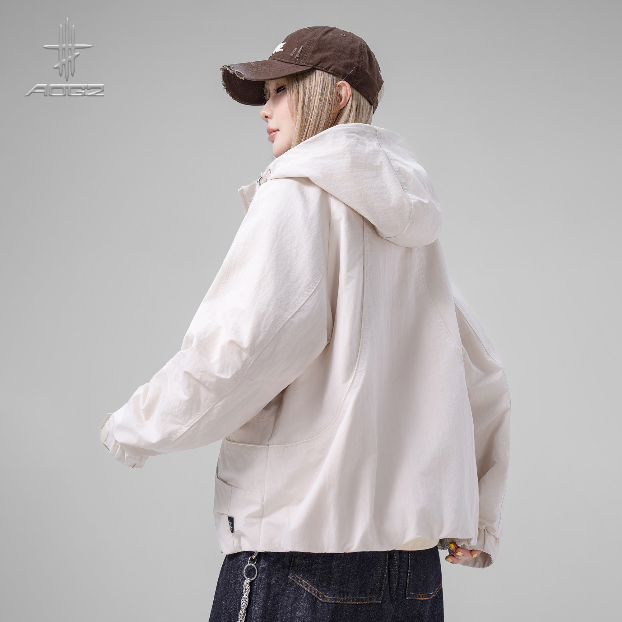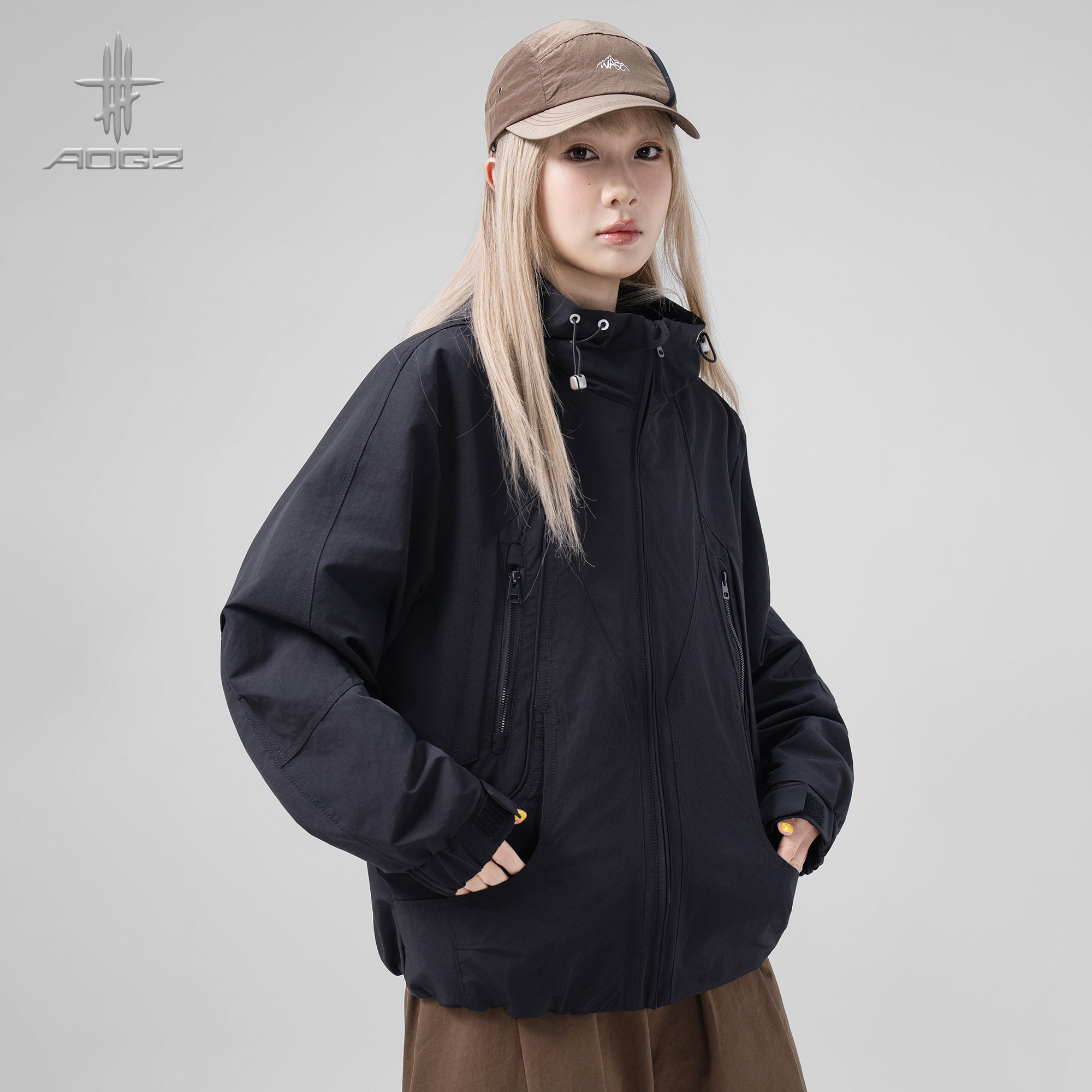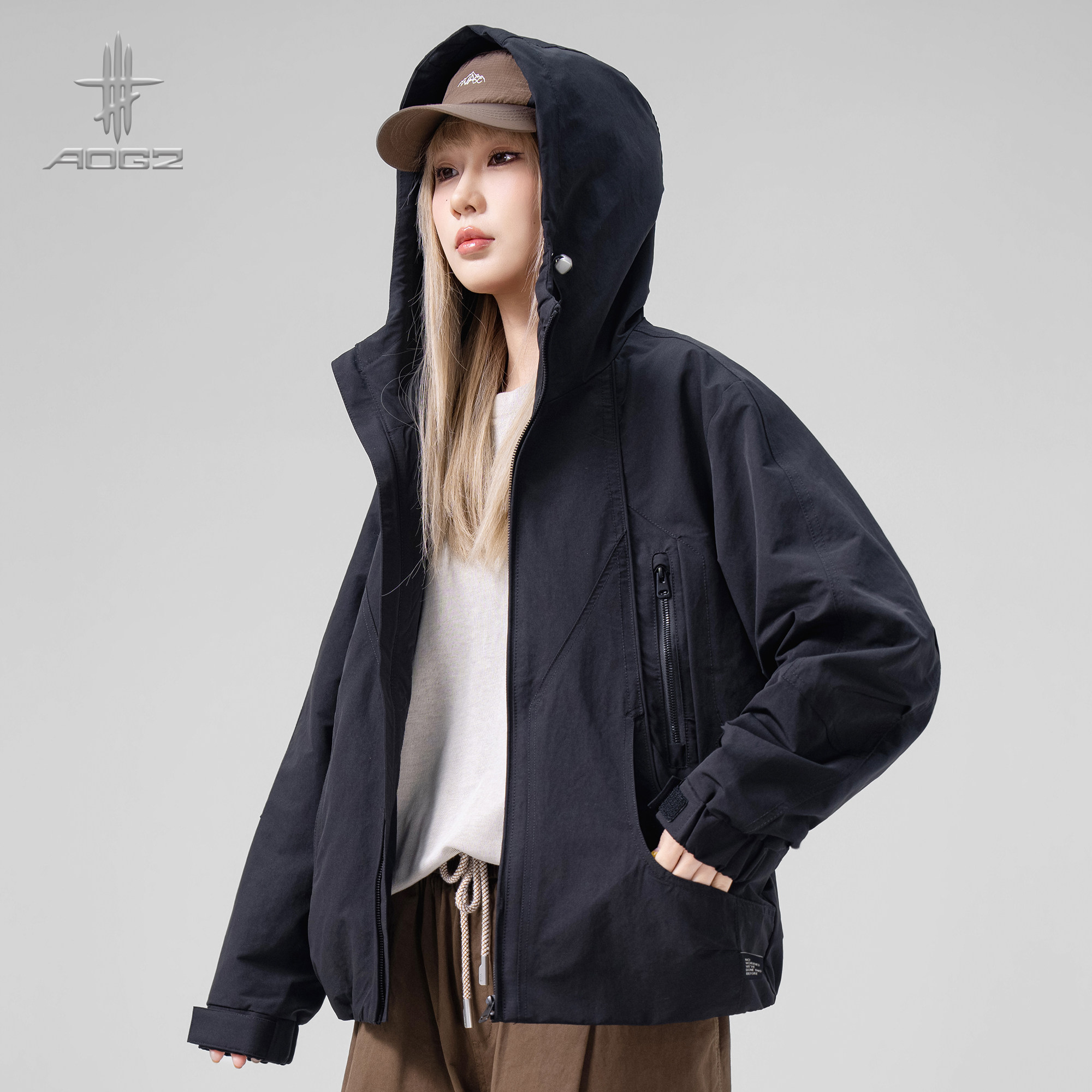 AOGZ美式潮牌解构冲锋外套男女春季新款户外宽松休闲百搭连帽夹克