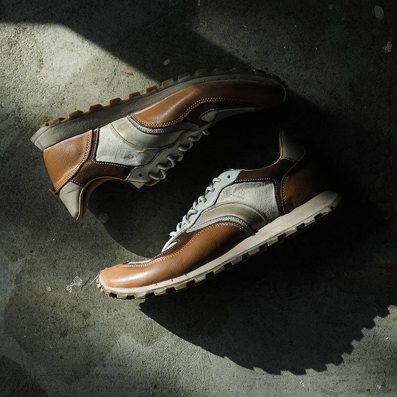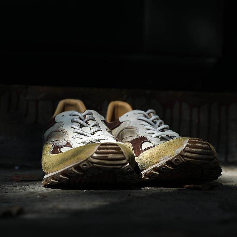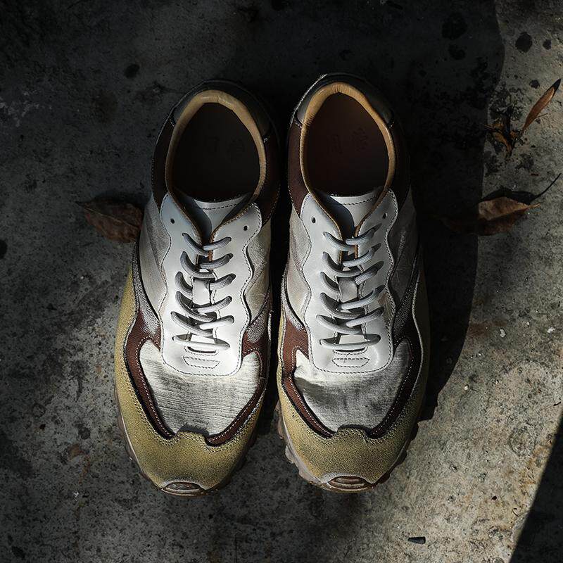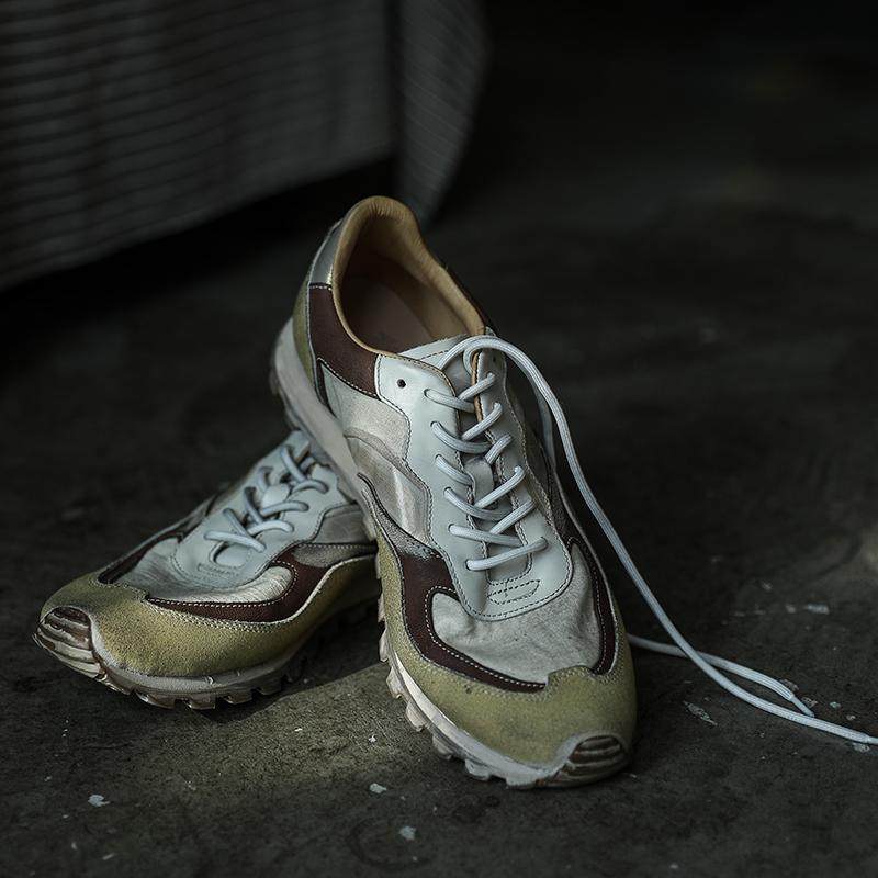 周莹国潮小众柔软透气拼色阿甘鞋牛皮纯手工复古慢跑运动休闲鞋