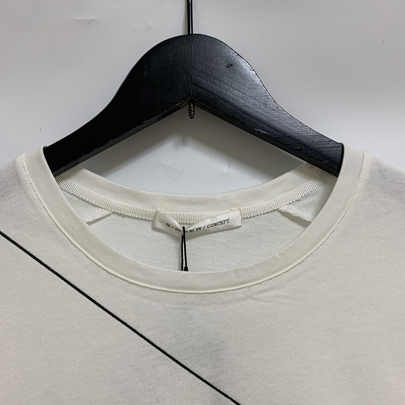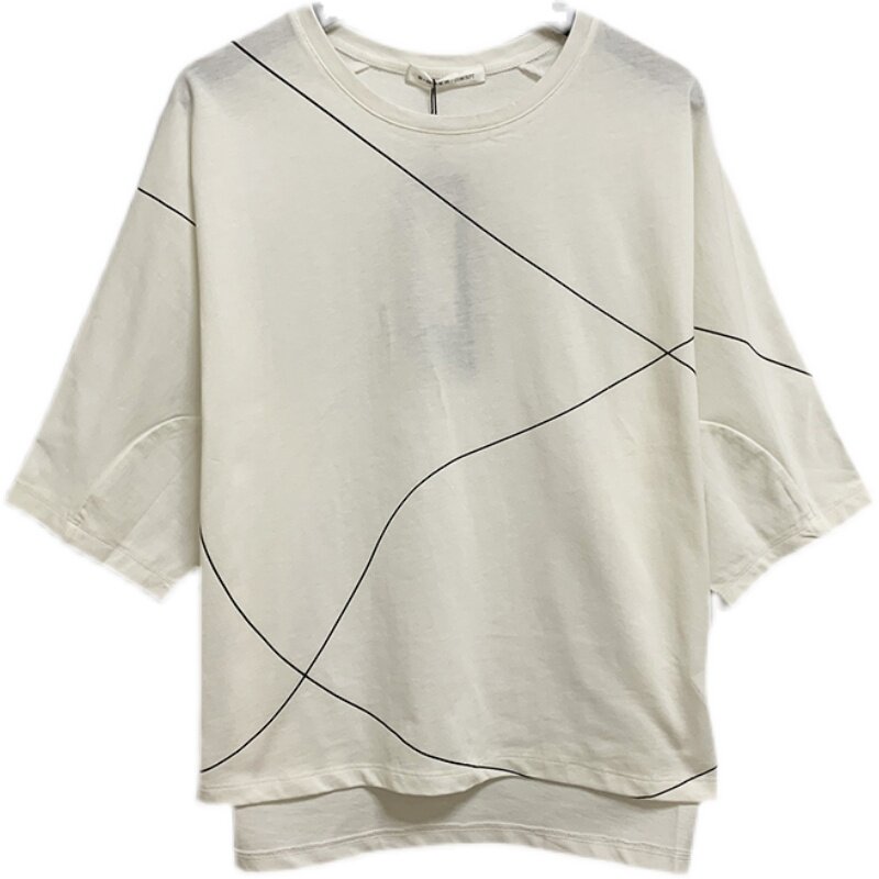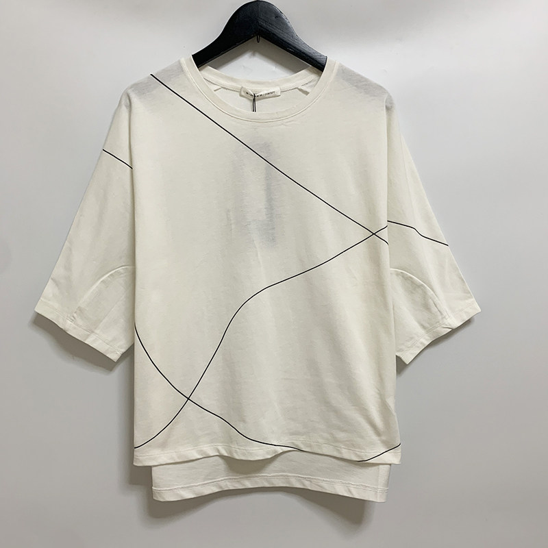 圣迪家女式简笔线条圆领宽松袖全棉厚款T恤0107
