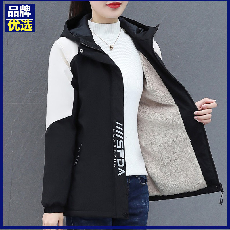 品牌优选冲锋衣外套女春秋冬百搭防风连帽风衣加绒双面穿上衣女潮