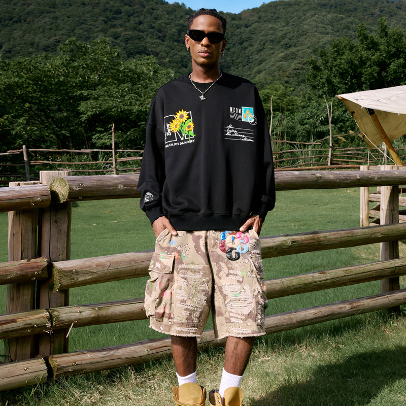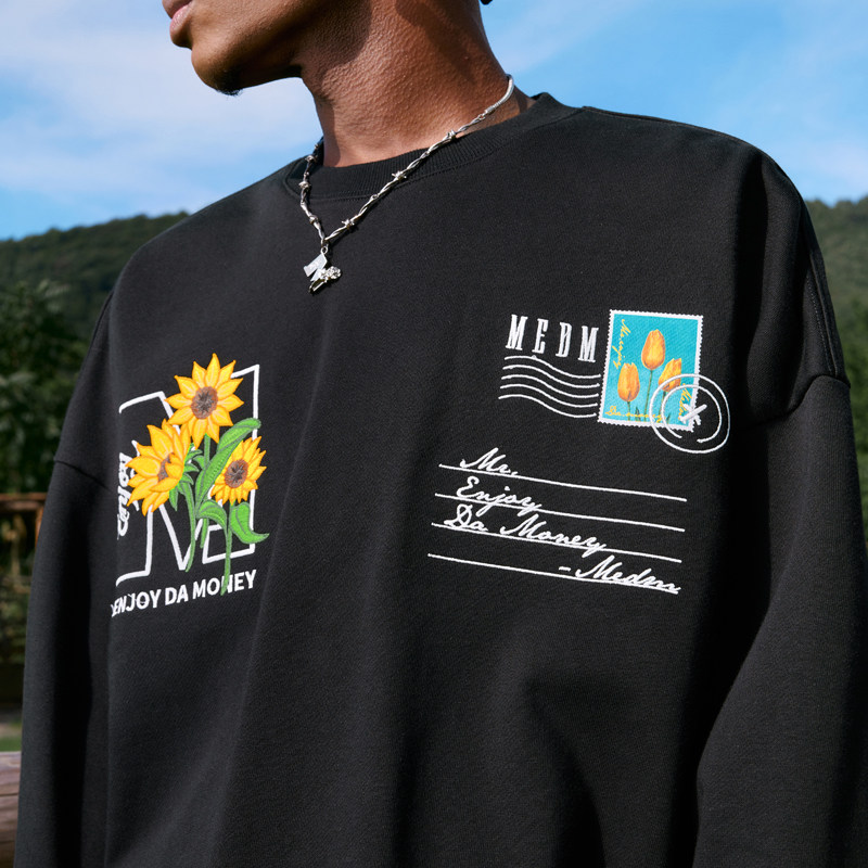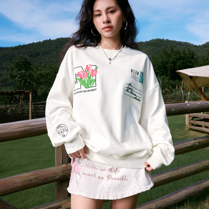MEDM明信片圆领卫衣男士春秋季新款国潮宽松情侣百搭长袖上衣外套