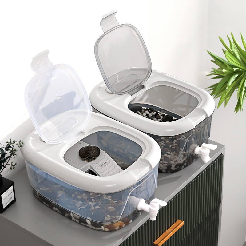 乌龟缸带晒台家用饲养箱养龟造景生态缸简易DIY透明大号龟缸排水
