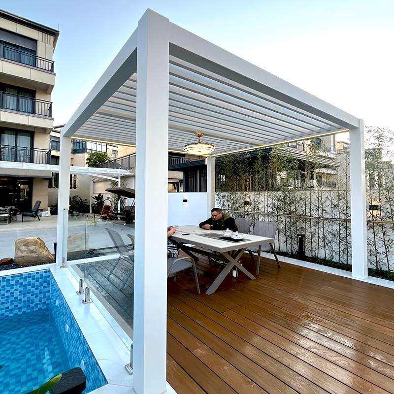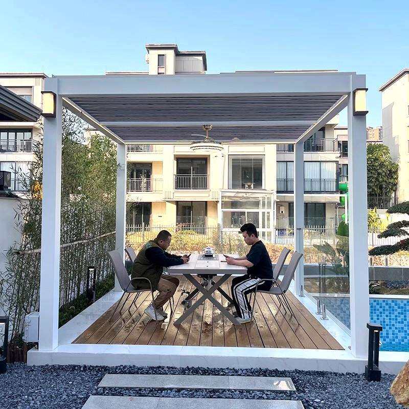 户外凉亭庭院铝合金电动百叶楼顶阳光房室外花园现代新中式亭子