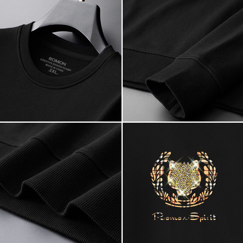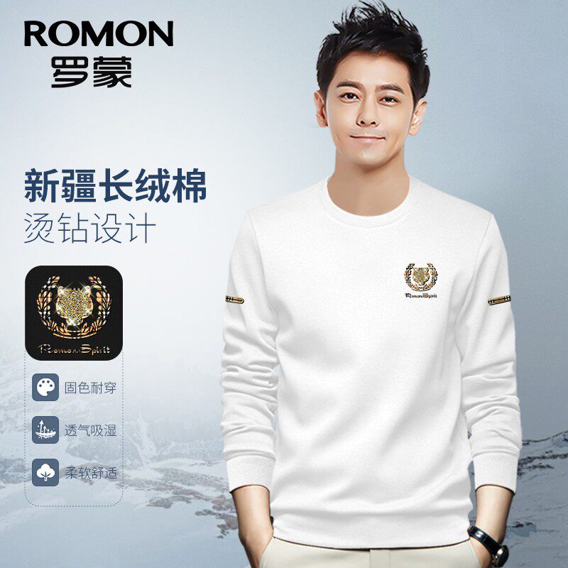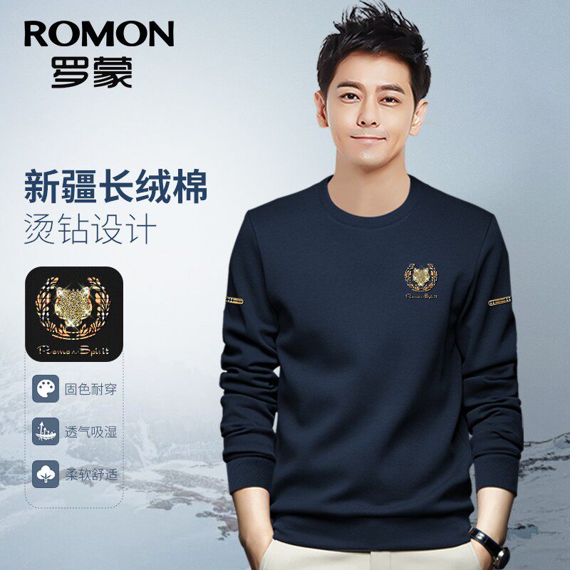 淘宝Romon/罗蒙RM6091秋季男士上衣烫钻舒适百搭圆领卫衣男装休闲时尚