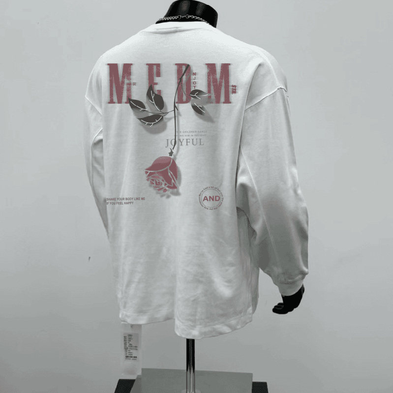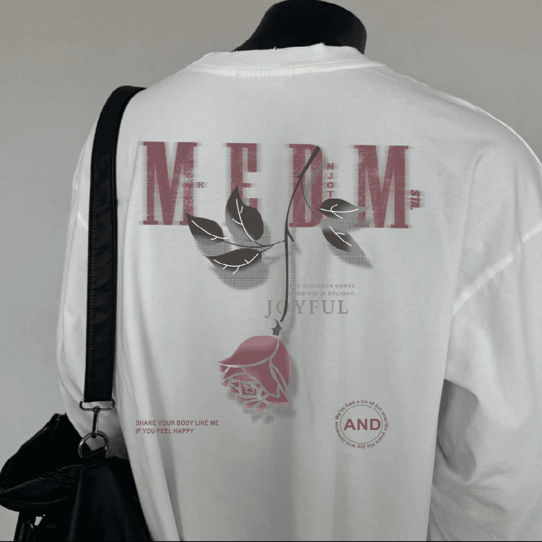 STA.MEDM联名玫瑰印花长袖t恤男美式潮牌街头痞帅宽松学生百搭潮