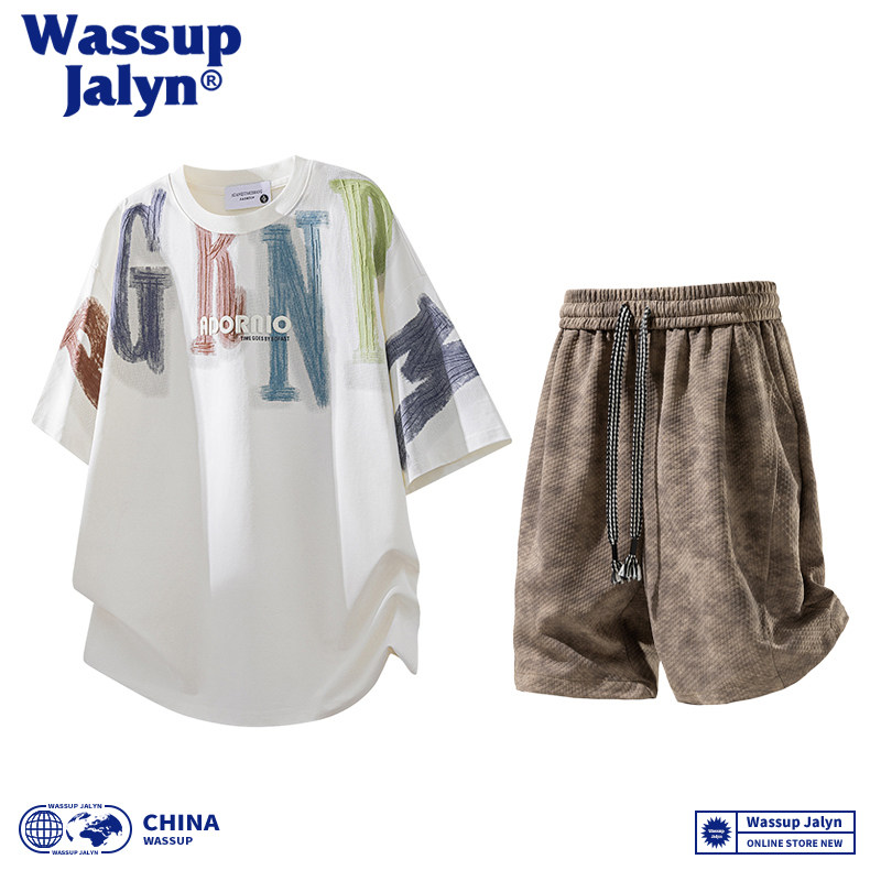 WASSUP JALYN潮牌运动套装男款美式休闲短袖T恤夏季沙滩短裤套装