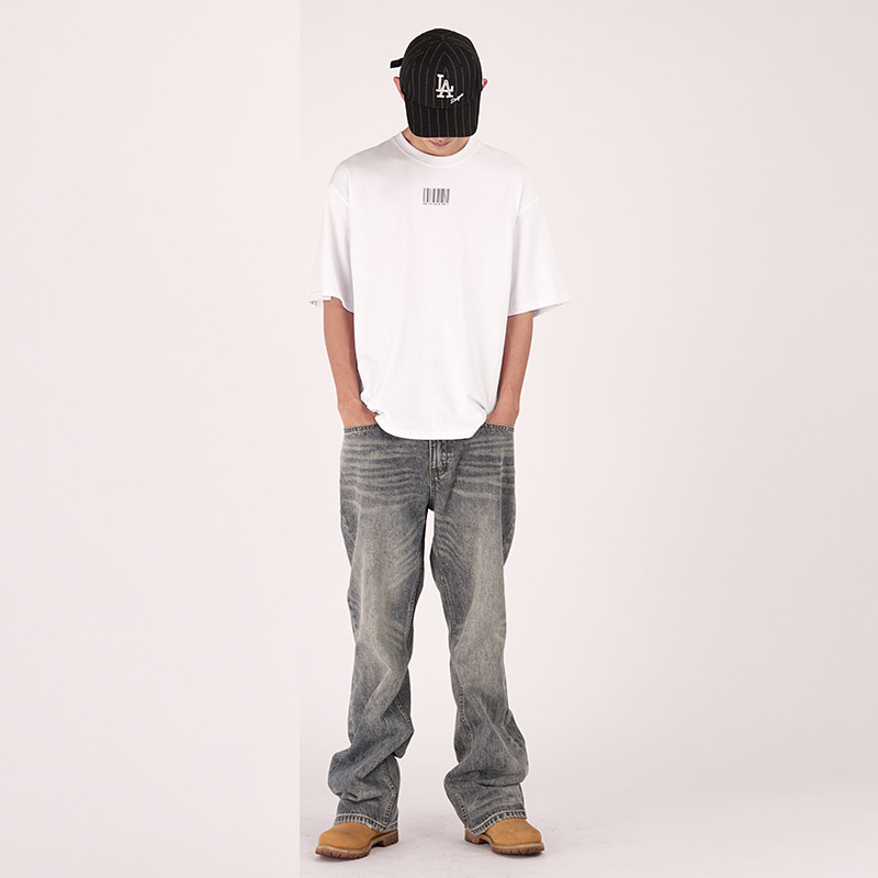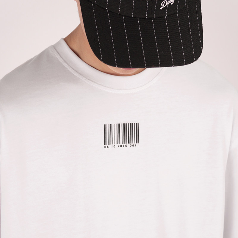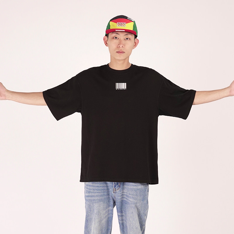 限时折扣 SIMOK2024简约条形码百搭clean fit时尚宽松纯棉短款T恤