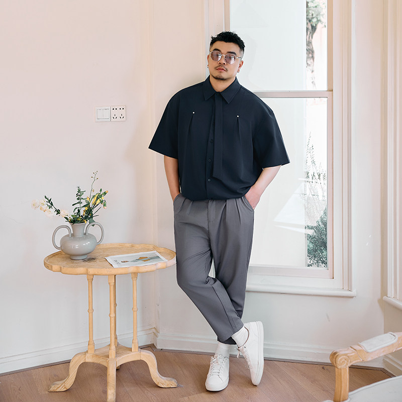 --------------------- 韦恩泽维尔加肥加大宽松大码男翻领显瘦遮胸装饰领带短袖衬衫9421 【原售价】169元 【现售价】148元 【推荐理由】