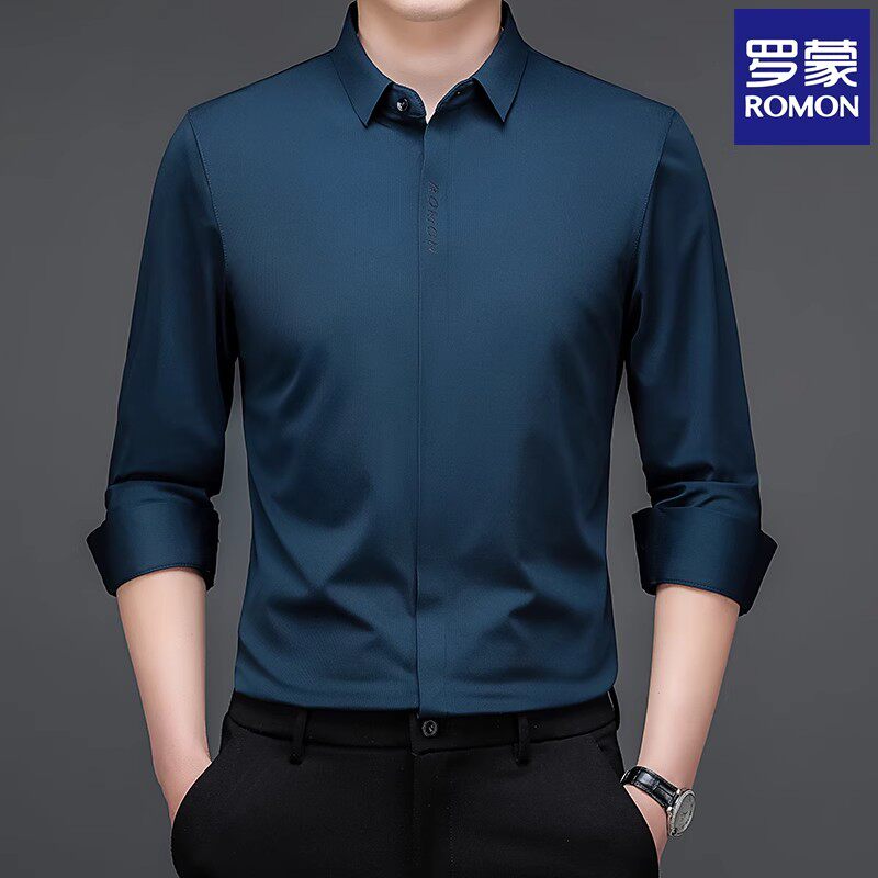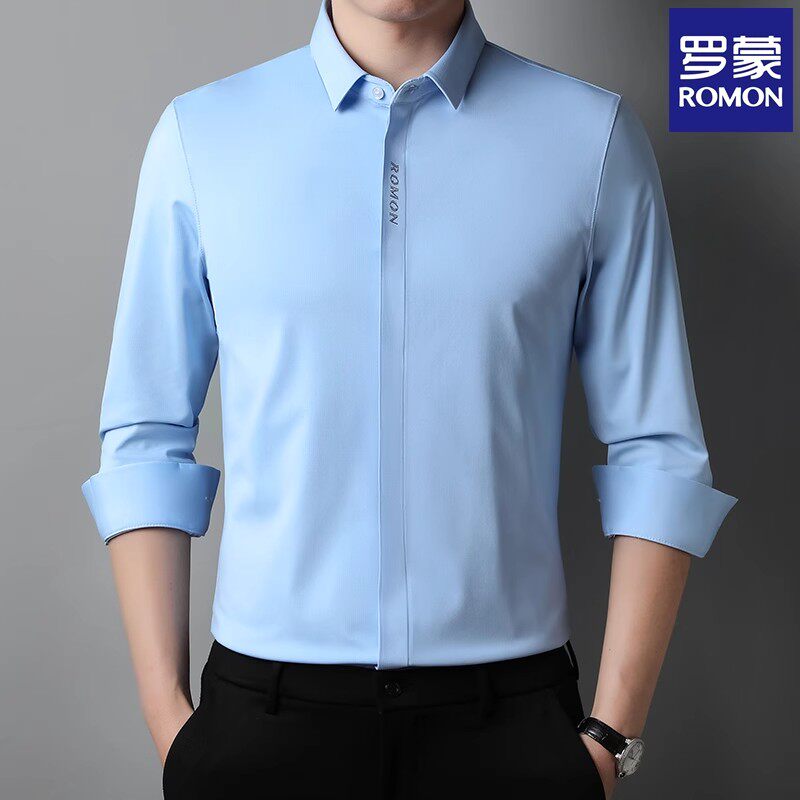 罗蒙2024新款春秋衬衫男士长袖商务无痕轻奢弹力抗皱衬衣打底衫男