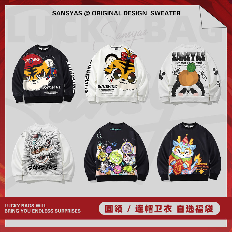 【特价清仓】连帽圆领拉链卫衣宽松上衣 情侣春秋冬季 印花潮牌