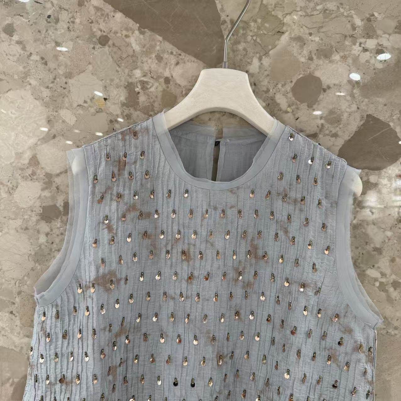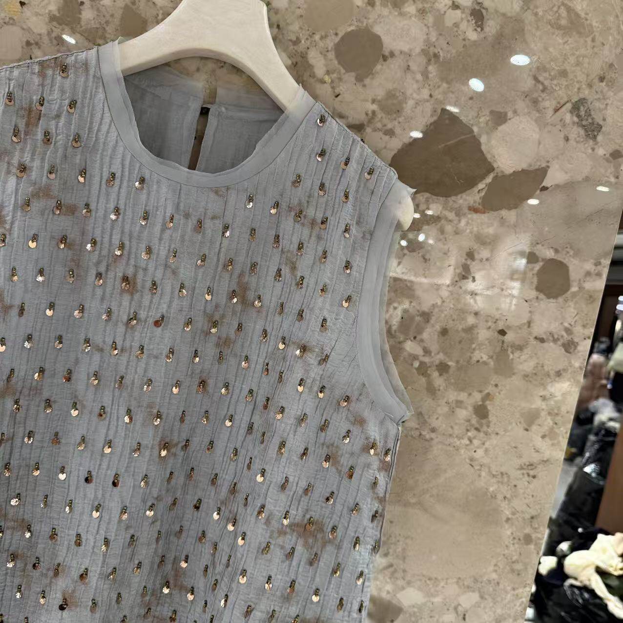 --------------------- 欧洲站2026新款欧货时尚圆领蝌蚪亮片脏染小众纱边背心马甲6H-198 --------------------- --------------------- 【原价】329元 【券后价】299元