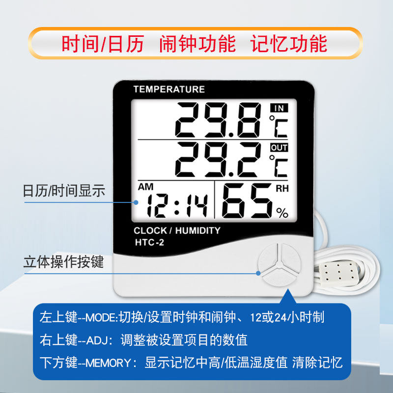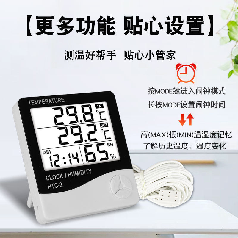 电子温湿度计HTC-2带外置探头线室内外双温度显示鱼缸温度计冰箱