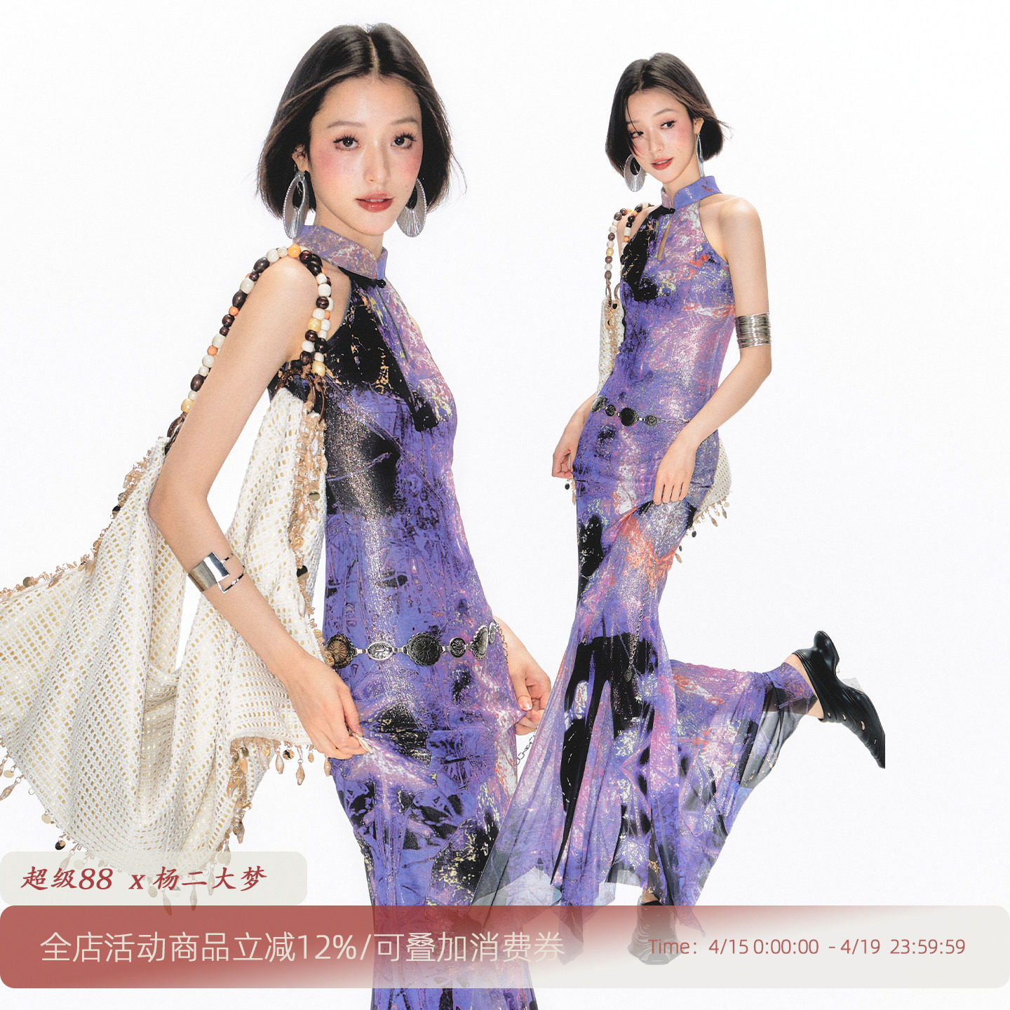 --------------------- 杨二大梦「夜染星河」新中式紫色印花挂脖无袖旗袍连衣裙立领长裙 【原售价】389元 【现售价】324元 【推荐理由】
